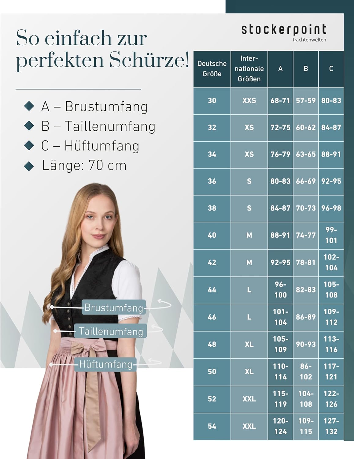 PRODUKTBESCHREIBUNGEN Dirndlschürze Kristin für Damen von Stockerpoint. Die gestiftelte Schürze aus hochwertigem Uni Jacquard besticht durch den changierenden Effekt. Der ideale Kombipartner für jede Gelegenheit. Mehr