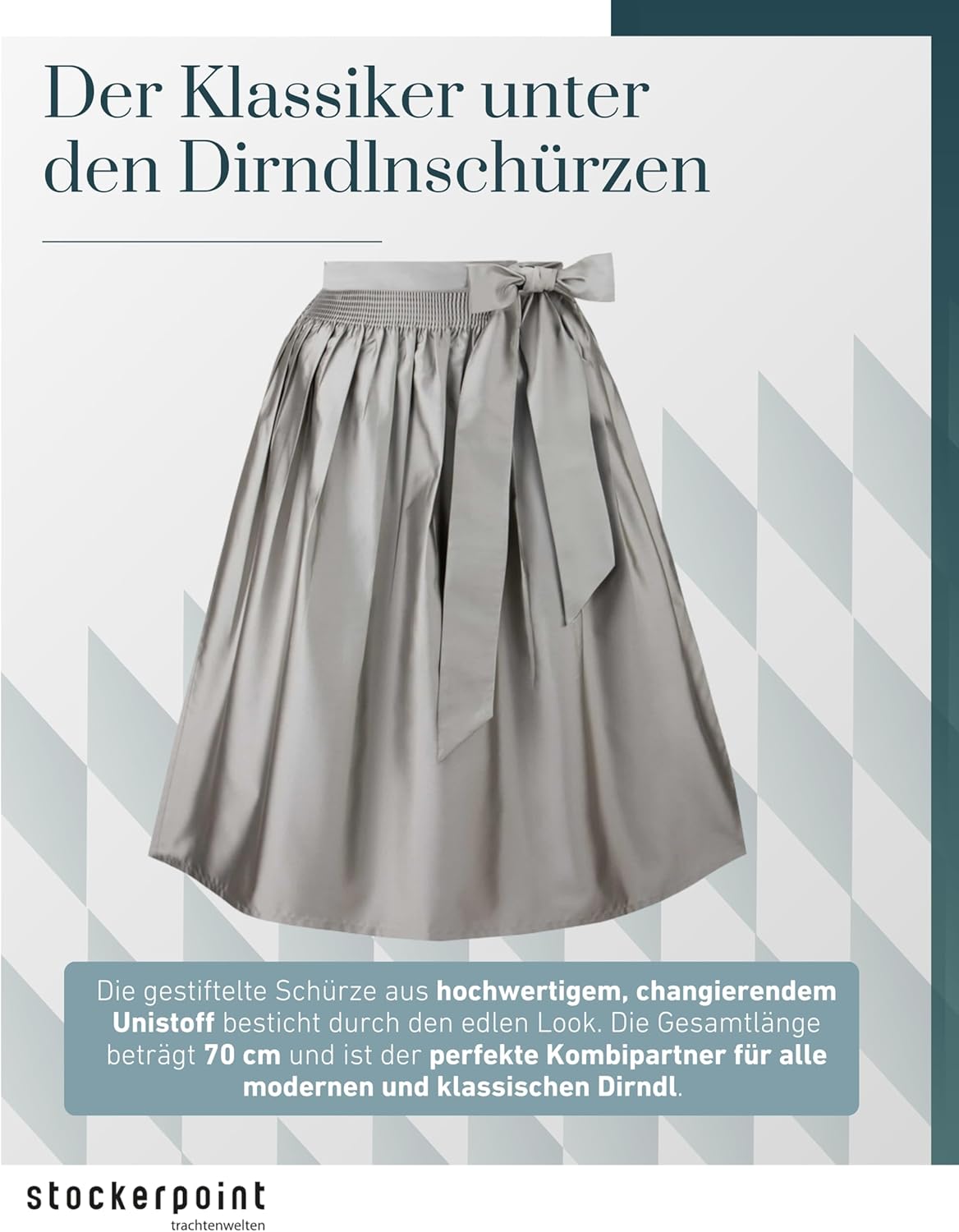 PRODUKTBESCHREIBUNGEN Dirndlschürze Kristin für Damen von Stockerpoint. Die gestiftelte Schürze aus hochwertigem Uni Jacquard besticht durch den changierenden Effekt. Der ideale Kombipartner für jede Gelegenheit. Mehr
