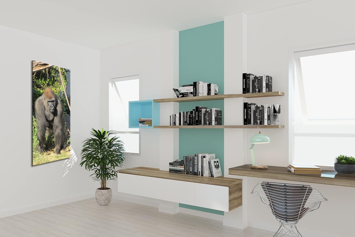 stolzer Gorilla Panorama 100x50 cm als Leinwandbild, Motiv fertig gerahmt auf Echtholzrahmen, Hochwe