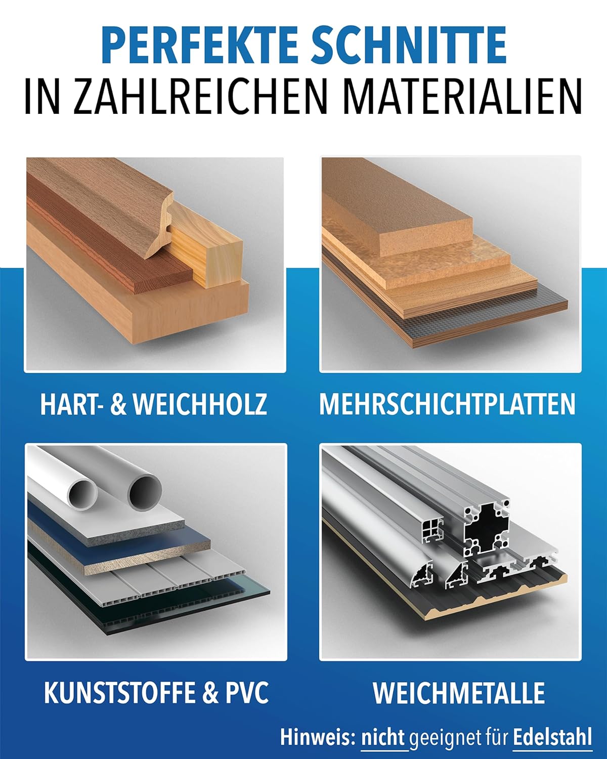 - ✅ 𝐀𝐔𝐒𝐑𝐈𝐒𝐒𝐅𝐑𝐄𝐈𝐄 𝐒𝐂𝐇𝐍𝐈𝐓𝐓𝐊𝐀𝐍𝐓𝐄𝐍 - Unsere sorgfältig abgestimmte Zahnteilung sorgt für saubere und verlauffreie Schnitte bei allen Materialien.