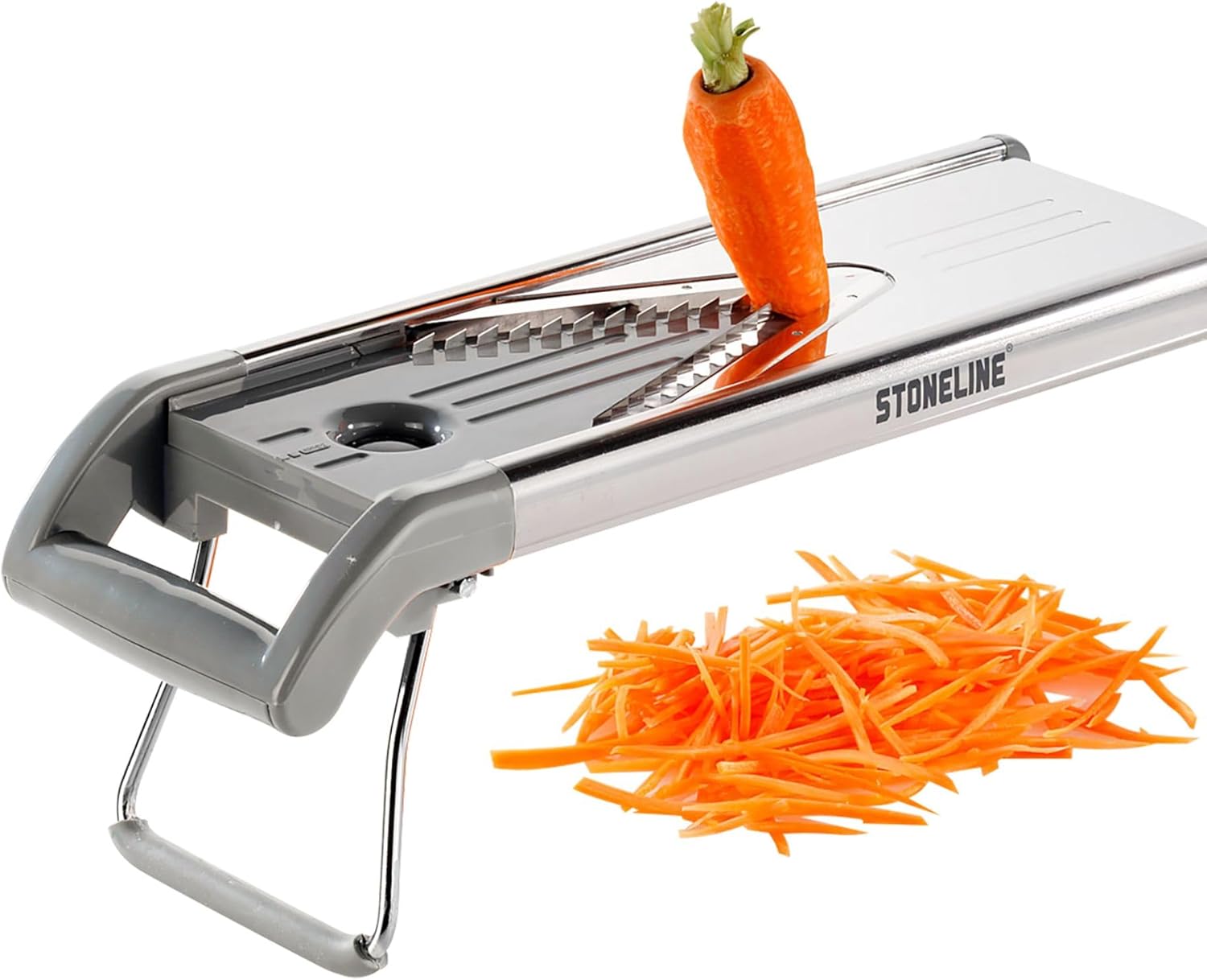 - Vielseitig einsetzbar: Der STONELINE Gemüsehobel mit 5 verschiedenen Schneideinsätzen lässt sich vielfältig einsetzten. Schneiden Sie damit hauchdünne, mittlere oder starke Scheiben sowie Stifte und feine Julienne-Streifen