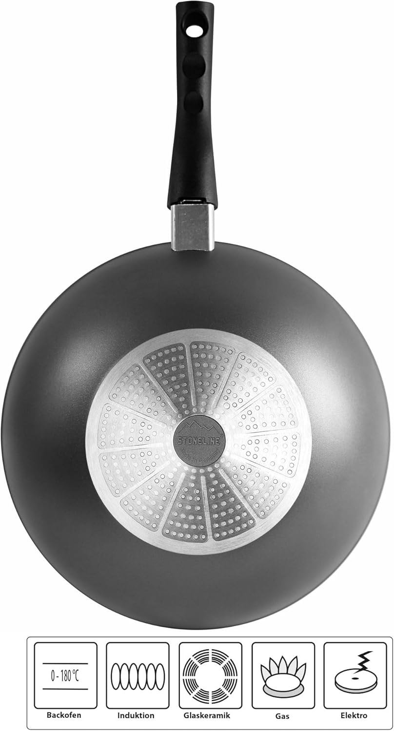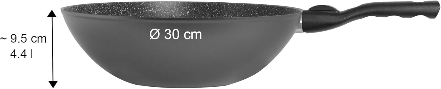 - STONELINE Made in Germany Wok mit abnehmbarem Griff - Durchmesser: 30 cm, Höhe 9,5 cm, Fassungsvermögen: ca. 4,3 L, Aluguss Wok mit Antihaftbeschichtung