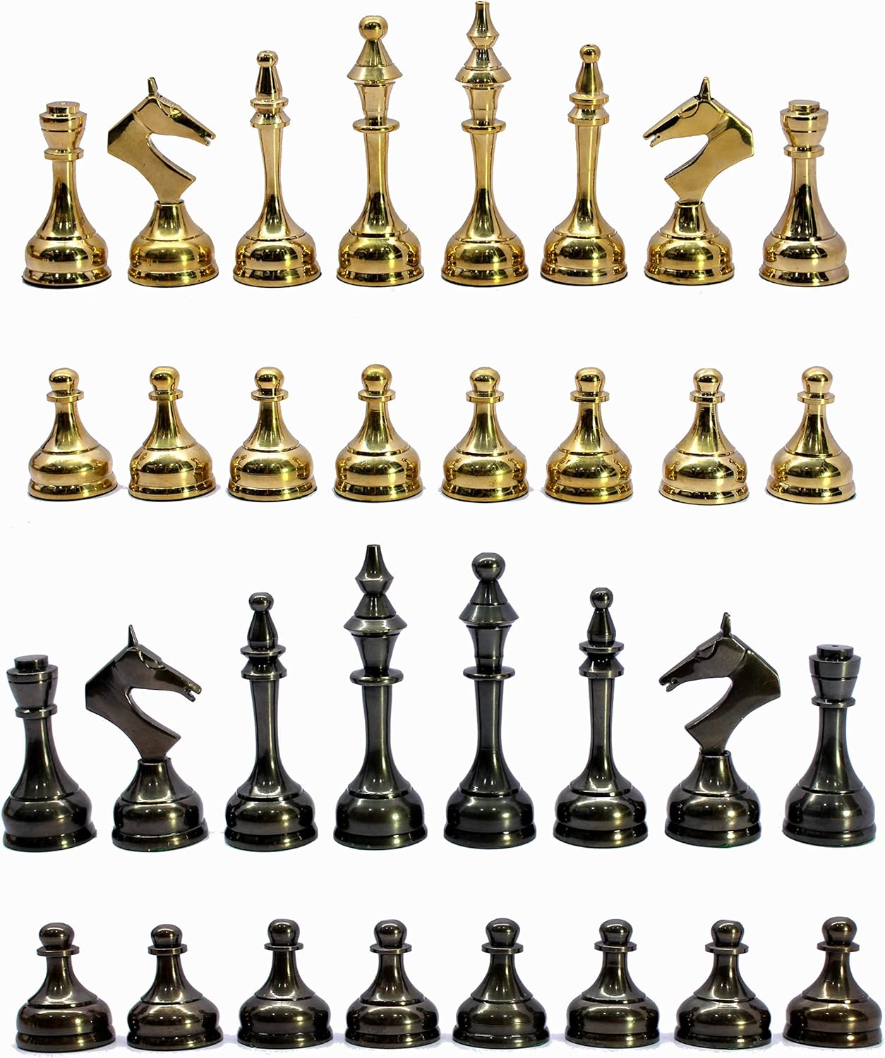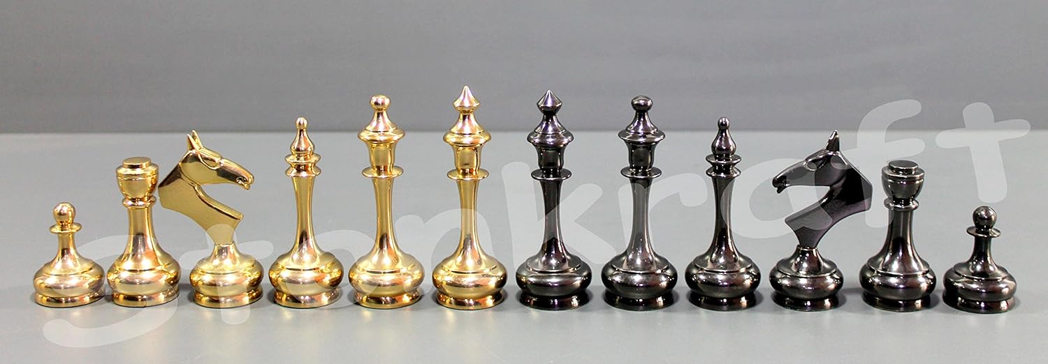 - Neues Design in Schachfiguren. Einzigartig. Schachfiguren aus 100% Messing und bemalt, um ihm die Farbe Shiny Black and Gold zu verleihen.