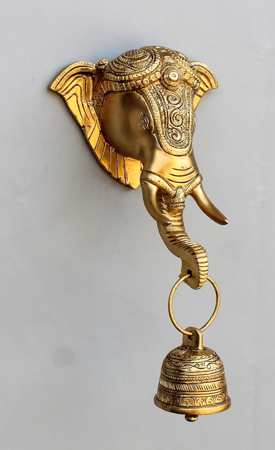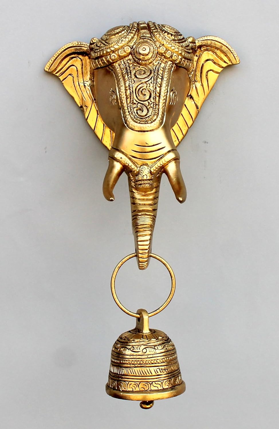 StonKraft Schöner Türklopfer mit Elefantengesicht, Türdekoration mit Messingglocke für Tür- und Wand