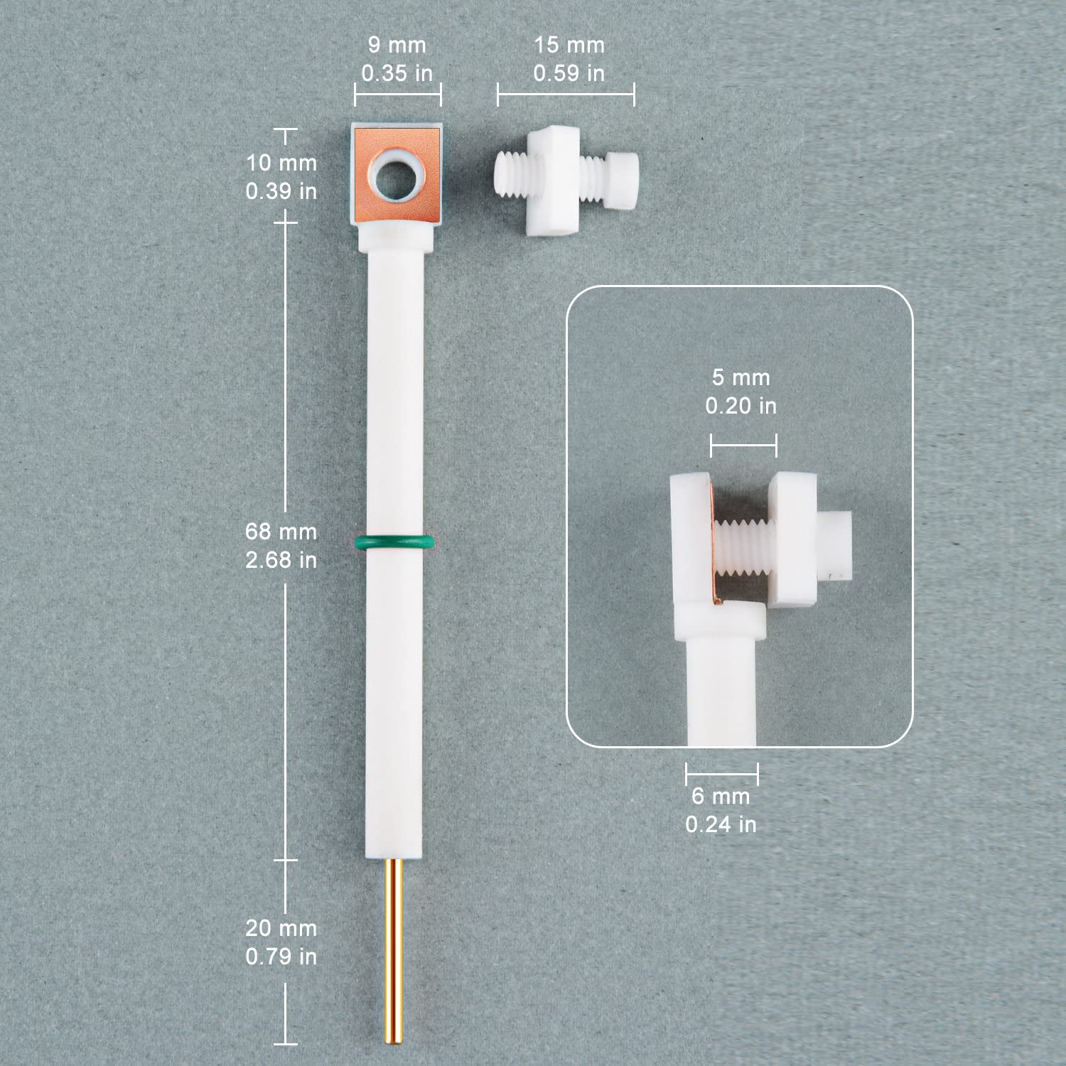 - Enthält eine 10*10 mm kupfer platte als leitfähiges Substrat, einen PTFE-Körper und einen vergoldeten kupfer stab als Anschluss