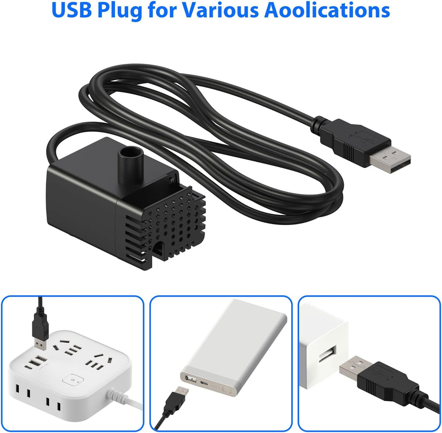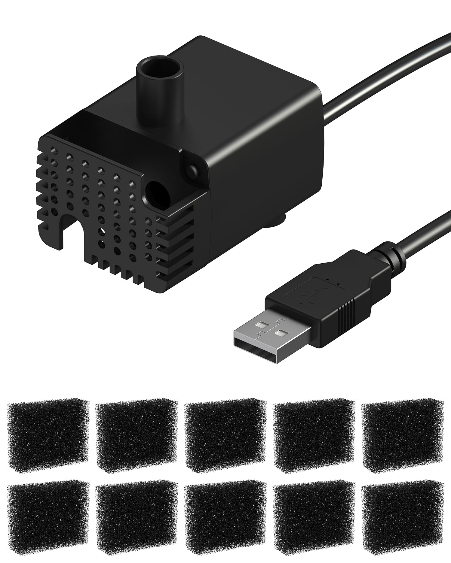 - 【Paket】Jedes Paket enthält eine originale Wasserpumpe, ein 2M/6ft USB A Kabel und 10 Schwammfilter.