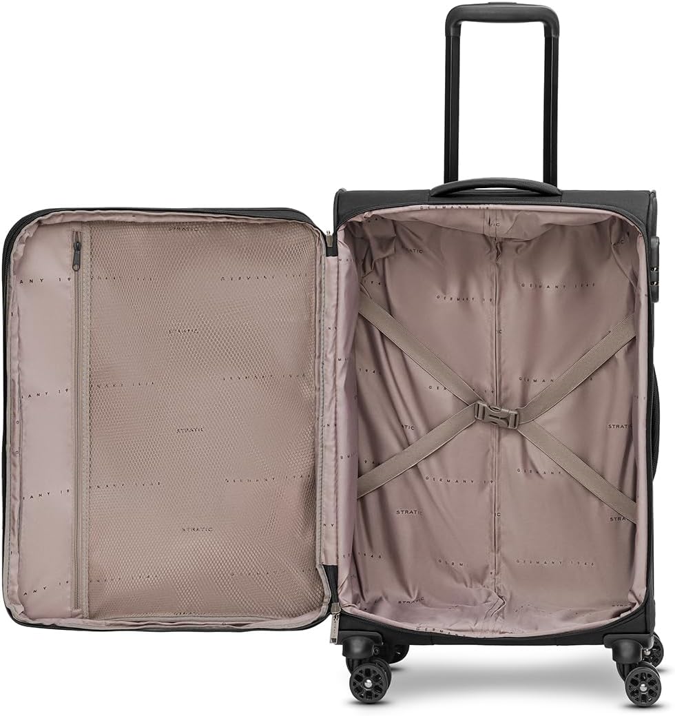 - Weichgepäck mit Dehnfalte und diversen Fächern: Dieser Koffer Mittelgross ist aus Polyester gefertigt und verfügt über eine Dehnfalte für zusätzlichen Stauraum. Er hat auch ein Netzfach, ein Reissverschlussfach und externe Taschen für die