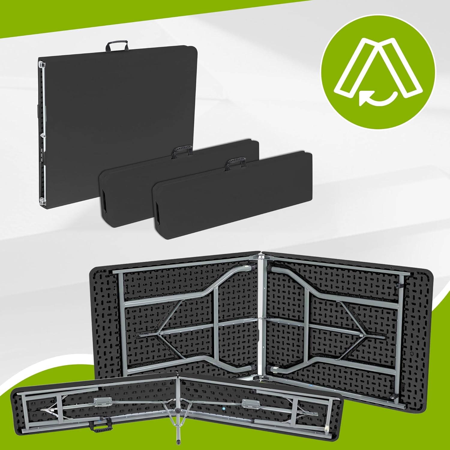 - Masse Tischfläche: ca. 180 x 70 cm (LxB), Masse Tisch eingeklappt: ca. 90 x 70 x 8 cm (LxBxH), Gewicht Tisch: ca. 10,5 kg