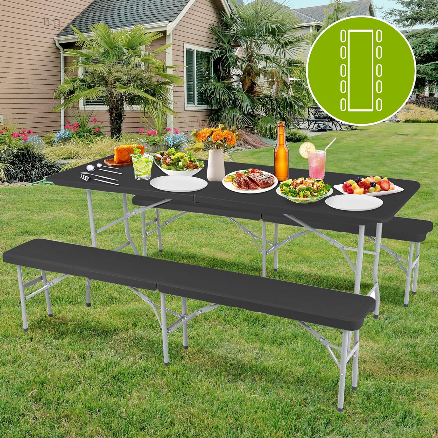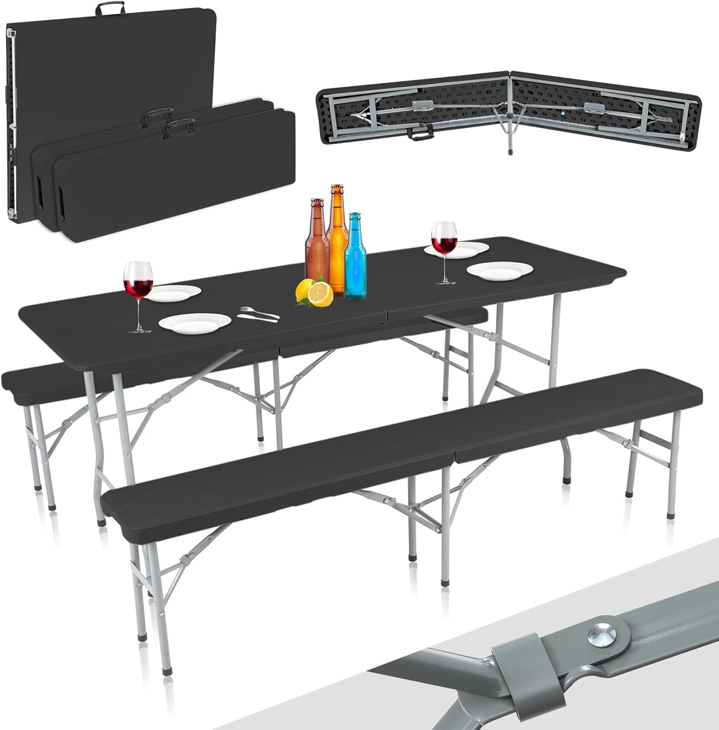 Variante: Schwarz - Set (1x Tisch & 2x Bank)