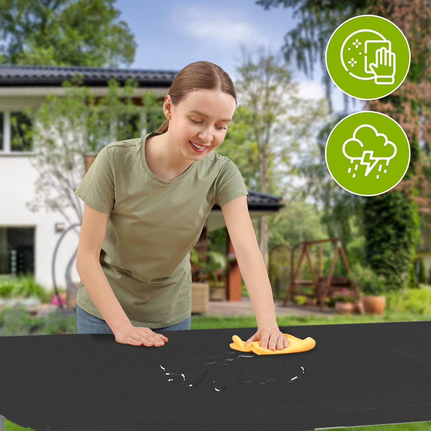 - Durch wetterfesten Kunststoff und pulverbeschichtetes Gestell bestens für den Ausseneinsatz geeignet