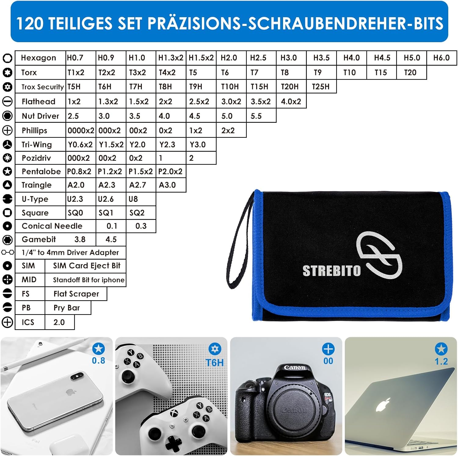 - 【Organize & Portable】Alle Schraubendreher Bits sind in Gummi-Bit-Halter, die mit Typ und Grösse für die schnelle Erkennung markiert gespeichert. Und die Reparaturwerkzeuge werden in einer reissfesten und stossfesten Oxford-Tasche aufbewahrt, die