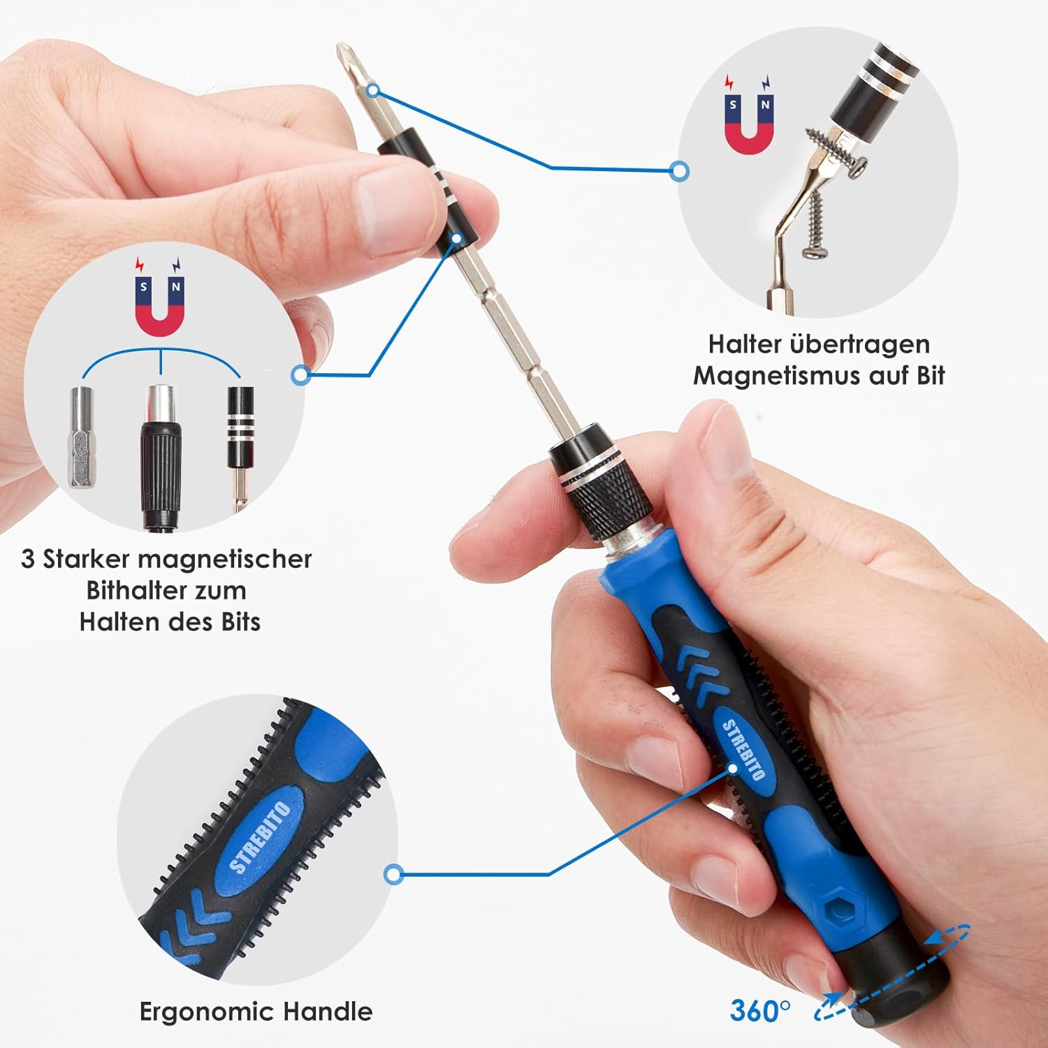 - 【Humanisiertes Design】Dieses elektronische Schraubendreherset wurde professionell entwickelt, um Ihre Reparaturfähigkeiten zu maximieren. Der Schraubendreher verfügt über einen Partikelgriff und einen gummierten, ergonomischen Griff mit drehbarem