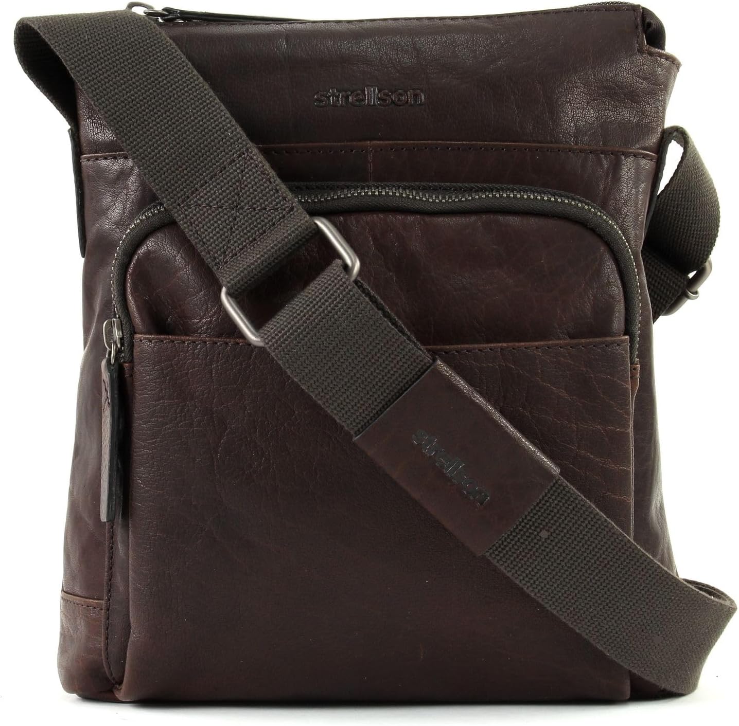Strellson - Coleman 2.0 kleine Schultertasche für Herren, Leder Tasche, Dunkelbraun