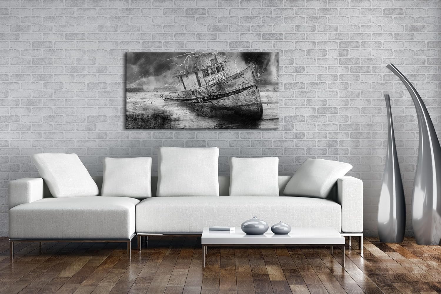 Stürmische Schiffsfahrt Panorama 80x40 cm Effekt: Schwarz/Weiss als Leinwandbild, Motiv fertig gerah