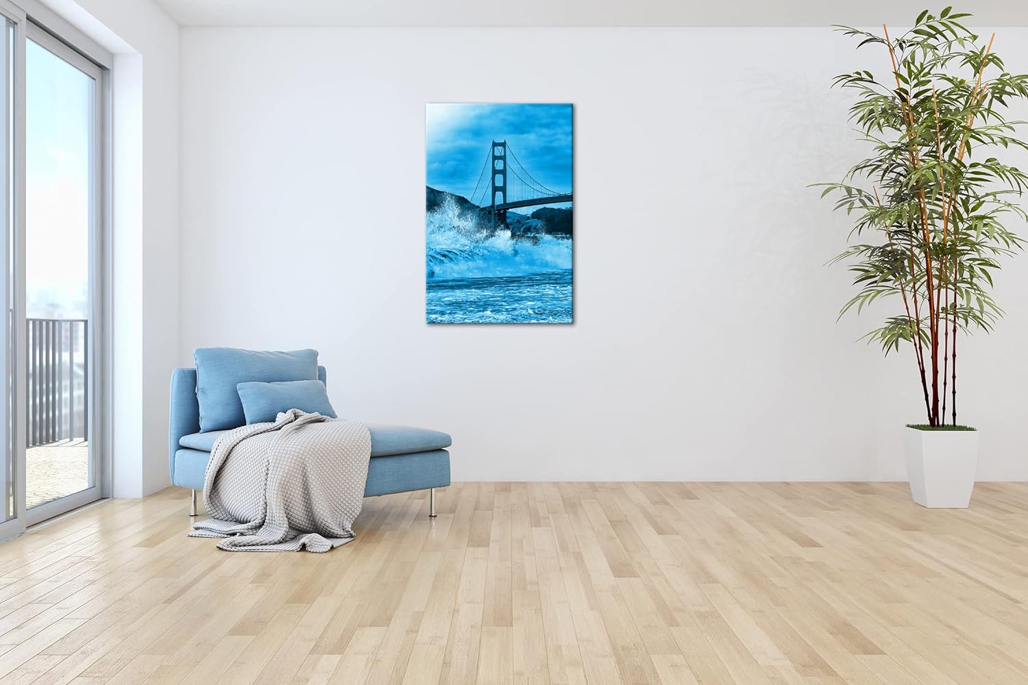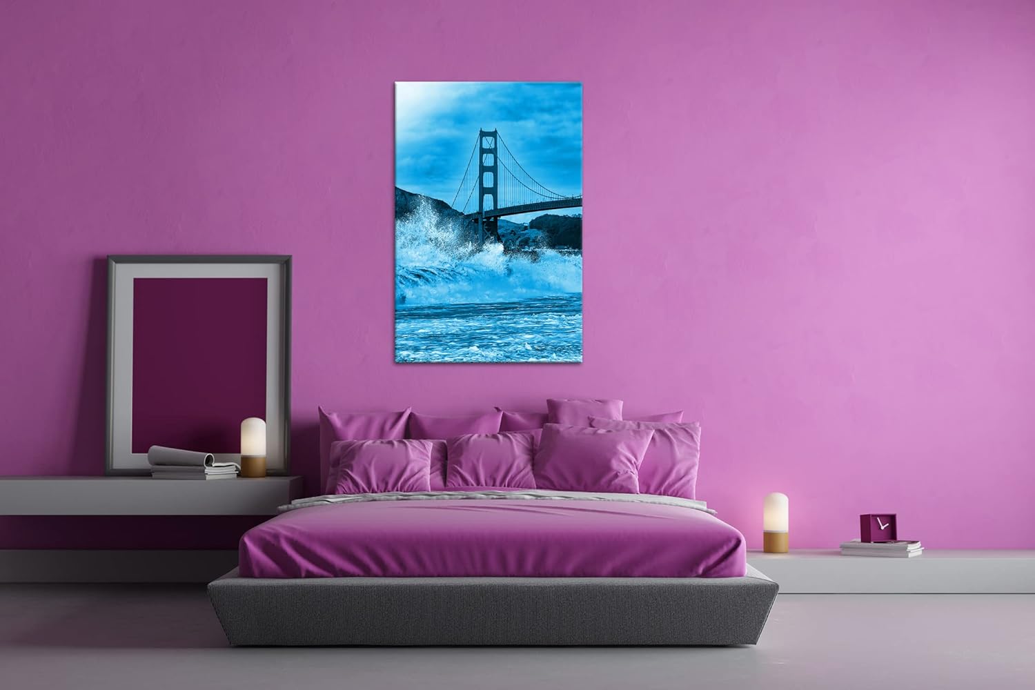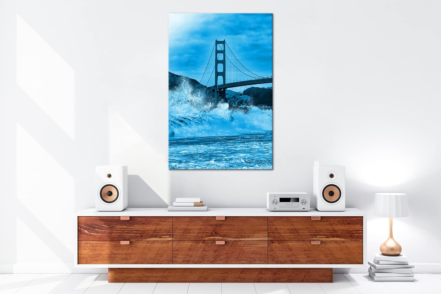 stürmische Wellen an der Golden Gate Bridge Format: 80x60 Effekt: Monocrome Blau als Leinwand, Motiv