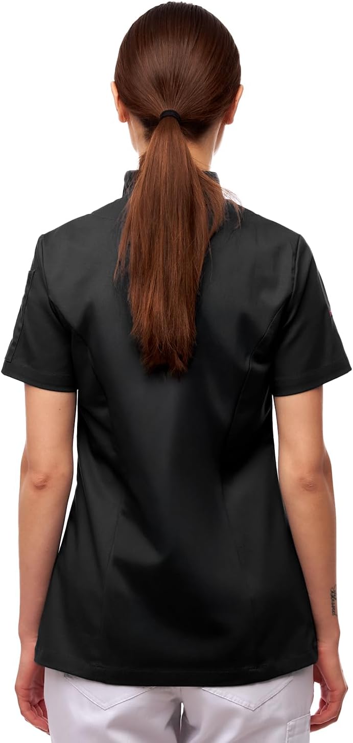 strongAnt Kochjacke Damen kurzarm Stretch mit Druckknöpfen oder Reissverschluss Kochuniform XS Schwa