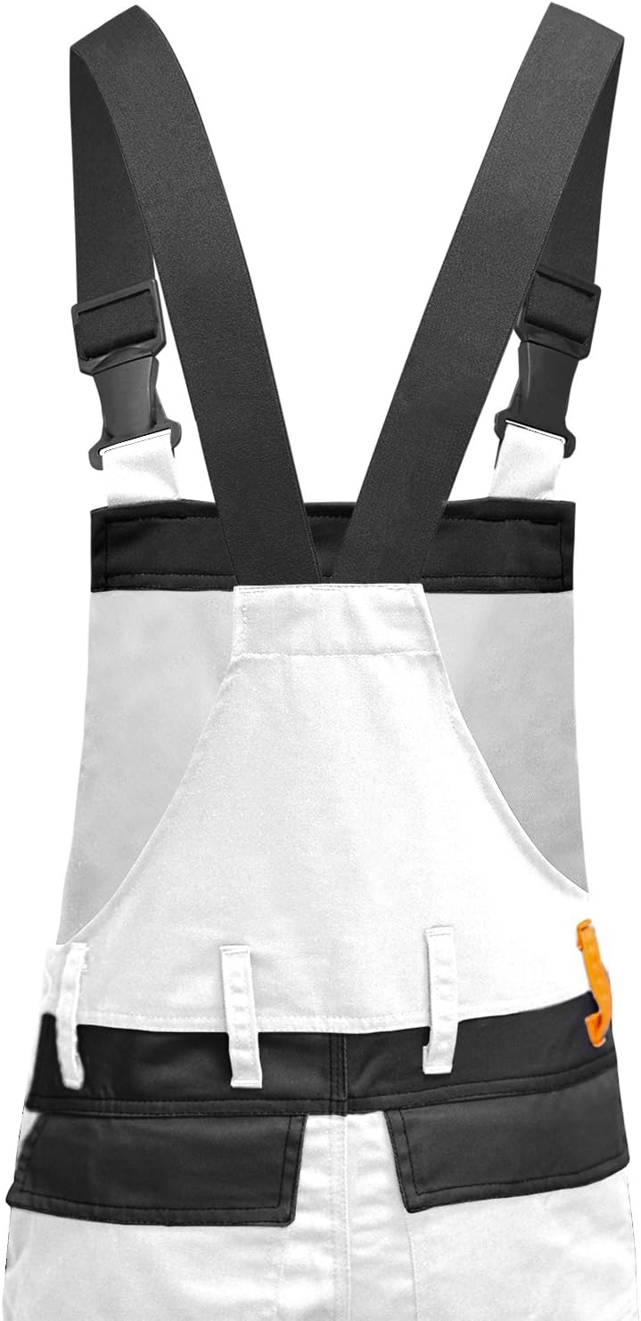 • [Arbeitslatzhose, powerStretch Herren] Malerlatzhose aus robustem Stoff mit Kniepolstertaschen für Industrie, Bau, Handwerk und Hausarbeiten. Geeignet als Berufskleidung für Industrie, Maler, Handwerker- und Hausarbeiten. Farbe: Weiss-Schwarz.
