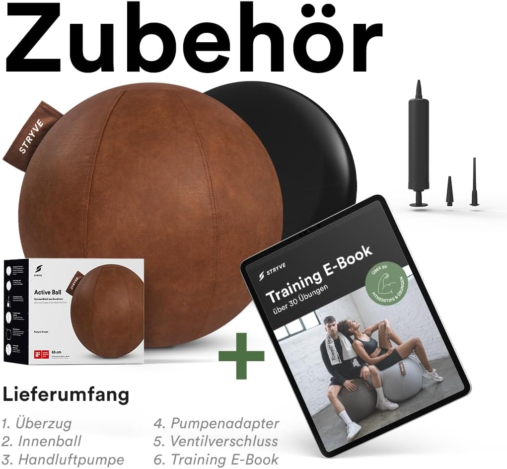 - GESUNDES SITZEN: Der Gymnastikball mit seinem hochwertigen Bezug aus Kunstleder eignet sich ideal als Büro-Ball zum ergonomischen Sitzen. Er fördert ein aufrechtes Sitzen und stärkt somit die Rückenmuskulatur