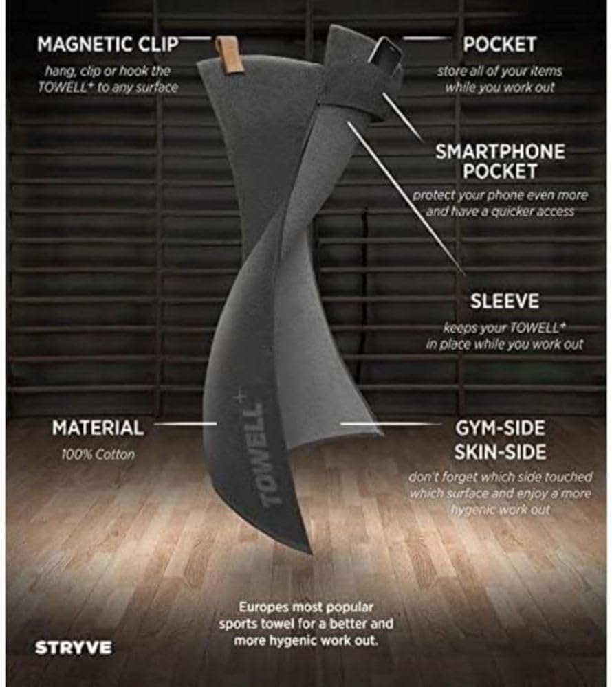 STRYVE Fitness Handtuch – Towell Plus Original aus DHDL – Mit Magnet und Reissverschluss Tasche - Fi