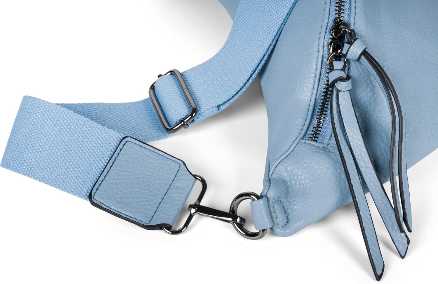 PRODUKTBESCHREIBUNGEN styleBREAKER Einfarbige Grosse Halbmond Crossbody Schultertasche aus fein strukturiertem Kunstleder mit abnehmbarem und verstellbarem Schultergurt Die edle Halbmond Förmige Handtasche, die sowohl als Crossbody Bag, als auch als Schultertasche oder Umhängetasche getragen werden kann, rundet dein Outfit optimal ab. Die Tasche wird über einen 2-Wege Reissverschluss geschlossen und bietet als Extra Stauraum noch ein Reissverschluss Fach auf der Rückseite. Das Hauptfach der Crossbag bietet genügend Platz für Portemonnaie, Schlüssel, Smartphone und Kleinigkeiten, die man unterwegs immer Griffbereit haben möchte. Der breite einfarbige Schultergurt aus hochwertig gewebtem Stoff kann über Karabiner abgenommen und gegen einen bunten Wechsel Taschengurt ausgetauscht werden. So verleihst du deiner Unifarbenen Umhängetasche jederzeit einen Individuellen Style und kannst sie für jeden Anlass neu Stylen. - Modisches Einfarbiges Design mit fein strukturierter Kunstleder Oberfläche - Abnehmbarer und Längenverstellbarer Schultergurt mit Karabiner zum einfachen austauschen - Breites Gurtband aus hochwertig gewebtem Material mit Kunstleder gesäumte Gurtenden für mehr Stabilität - Hauptfach mit 2-Wege Reissverschluss - Reissverschluss Fach auf der Rückseite der Tasche - Die Handtasche kann als Umhängetasche, Schultertasche oder Crossbag getragen werden - Material: Material aussen: 100% Polyurethan Material innen: 80% Nylon / 20% Baumwolle - Masse B/H/T: ca. 37 x 17 x 10 cm - Breite Gurtband: ca. 5 cm - Schultergurt verstellbar von ca. 71 bis 128 cm - Ausstattung: Hauptfach mit 2-Wege Reissverschluss Innen 1 Steckfach, 1 Reissverschluss Seitenfach 1 Reissverschluss Fach Hinten Der Inhalt der Produktbilder dient nur zur Veranschaulichung und ist