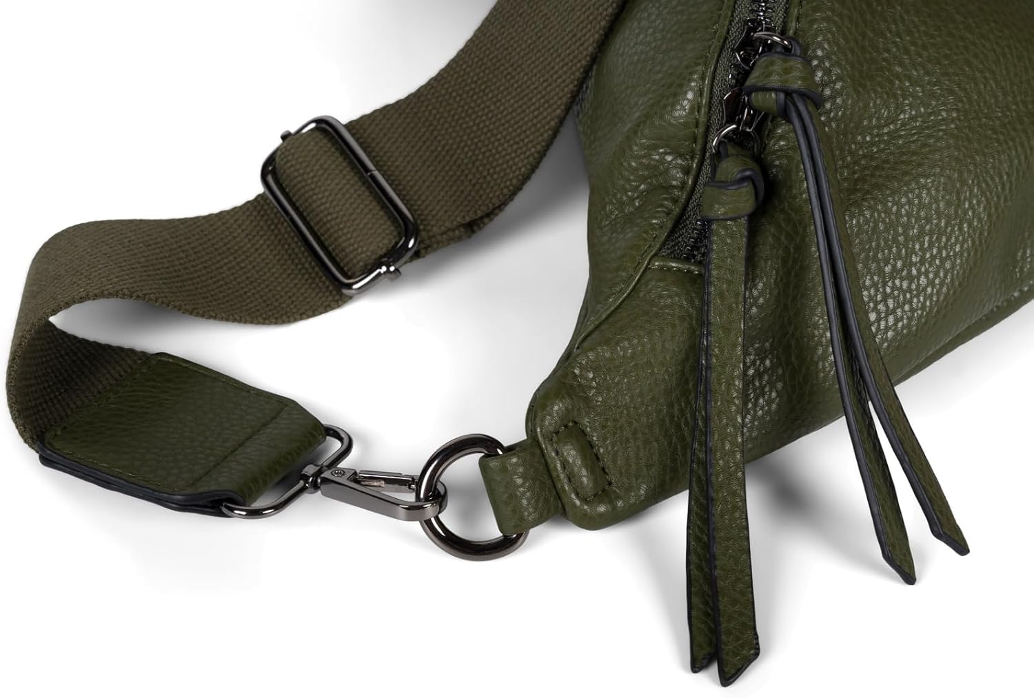 PRODUKTBESCHREIBUNGEN styleBREAKER Einfarbige Grosse Halbmond Crossbody Schultertasche aus fein strukturiertem Kunstleder mit abnehmbarem und verstellbarem Schultergurt Die edle Halbmond Förmige Handtasche, die sowohl als Crossbody Bag, als auch als Schultertasche oder Umhängetasche getragen werden kann, rundet dein Outfit optimal ab. Die Tasche wird über einen 2-Wege Reissverschluss geschlossen und bietet als Extra Stauraum noch ein Reissverschluss Fach auf der Rückseite. Das Hauptfach der Crossbag bietet genügend Platz für Portemonnaie, Schlüssel, Smartphone und Kleinigkeiten, die man unterwegs immer Griffbereit haben möchte. Der breite einfarbige Schultergurt aus hochwertig gewebtem Stoff kann über Karabiner abgenommen und gegen einen bunten Wechsel Taschengurt ausgetauscht werden. So verleihst du deiner Unifarbenen Umhängetasche jederzeit einen Individuellen Style und kannst sie für jeden Anlass neu Stylen. - Modisches Einfarbiges Design mit fein strukturierter Kunstleder Oberfläche - Abnehmbarer und Längenverstellbarer Schultergurt mit Karabiner zum einfachen austauschen - Breites Gurtband aus hochwertig gewebtem Material mit Kunstleder gesäumte Gurtenden für mehr Stabilität - Hauptfach mit 2-Wege Reissverschluss - Reissverschluss Fach auf der Rückseite der Tasche - Die Handtasche kann als Umhängetasche, Schultertasche oder Crossbag getragen werden - Material: Material aussen: 100% Polyurethan Material innen: 80% Nylon / 20% Baumwolle - Masse B/H/T: ca. 37 x 17 x 10 cm - Breite Gurtband: ca. 5 cm - Schultergurt verstellbar von ca. 71 bis 128 cm - Ausstattung: Hauptfach mit 2-Wege Reissverschluss Innen 1 Steckfach, 1 Reissverschluss Seitenfach 1 Reissverschluss Fach Hinten Der Inhalt der Produktbilder dient nur zur Veranschaulichung und ist