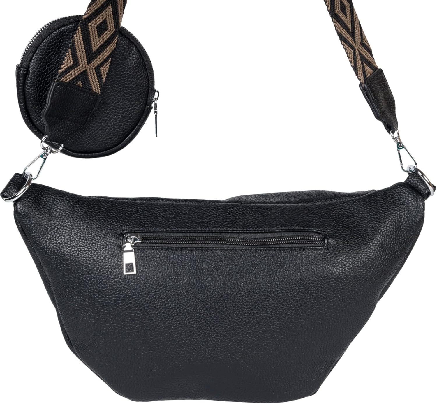 PRODUKTBESCHREIBUNGEN styleBREAKER Einfarbiges Taschen Set bestehend aus Halbmond Crossbody Schultertasche mit kleiner Runder Börse mit abnehmbarem und verstellbarem Schultergurt mit Rauten Muster Das edle 2-Teilige Set aus Halbmond Förmiger Handtasche, die sowohl als Crossbody Bag, als auch als Schultertasche oder Umhängetasche getragen werden kann, und einer runden kleinen Börse, die am Schultergurt befestigt werden kann, rundet dein Outfit optimal ab. Die Tasche kann über einen Reissverschluss geschlossen werden und bietet als extra Stauraum noch ein Reissverschluss Fach auf der Rückseite. Das Hauptfach der Crossbag bietet genügend Platz für Portemonnaie, Schlüssel, Smartphone und Kleinigkeiten, die man unterwegs immer griffbereit haben möchte. Der breite Schultergurt mit Rauten Muster aus hochwertig gewebtem Stoff kann über Karabiner abgenommen werden. So verleihst du deiner Unifarbenen Umhängetasche jederzeit einen Individuellen Style und kannst sie für jeden Anlass neu Stylen. - Modisches Einfarbiges Design mit fein strukturierter Kunstleder Oberfläche - Abnehmbarer und Längenverstellbarer Schultergurt mit Rauten Muster kann mit Karabiner einfach ausgetauscht werden - Breites Gurtband aus hochwertig gewebtem Material mit Kunstleder gesäumte Gurtenden für mehr Stabilität und Öse zur Befestigung der kleinen runden Börse - Hauptfach mit Reissverschluss - Reissverschluss Fach auf der Rückseite der Tasche - Die Handtasche kann als Umhängetasche, Schultertasche oder Crossbag getragen werden - Die kleine runde Börse kann abgenommen und als kleines Portemonnaie oder Schlüsselmäppchen verwendet werden - Material: Material aussen: 100% Polyurethan Material innen: 100% Polyester - Tasche Masse B/H/T: ca. 37 x 19 x 11 cm - Durchmesser Börse ca. 12 cm - Breite Gurtband: ca. 5