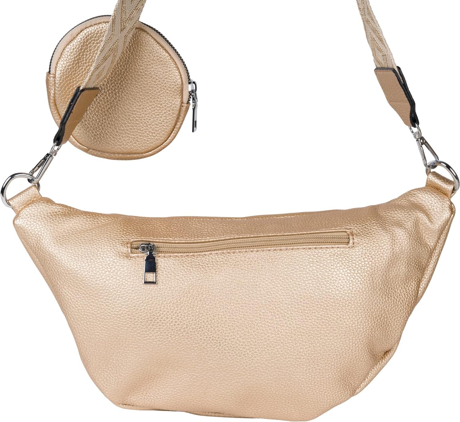 PRODUKTBESCHREIBUNGEN styleBREAKER Einfarbiges Taschen Set bestehend aus Halbmond Crossbody Schultertasche mit kleiner Runder Börse mit abnehmbarem und verstellbarem Schultergurt mit Rauten Muster Das edle 2-Teilige Set aus Halbmond Förmiger Handtasche, die sowohl als Crossbody Bag, als auch als Schultertasche oder Umhängetasche getragen werden kann, und einer runden kleinen Börse, die am Schultergurt befestigt werden kann, rundet dein Outfit optimal ab. Die Tasche kann über einen Reissverschluss geschlossen werden und bietet als extra Stauraum noch ein Reissverschluss Fach auf der Rückseite. Das Hauptfach der Crossbag bietet genügend Platz für Portemonnaie, Schlüssel, Smartphone und Kleinigkeiten, die man unterwegs immer griffbereit haben möchte. Der breite Schultergurt mit Rauten Muster aus hochwertig gewebtem Stoff kann über Karabiner abgenommen werden. So verleihst du deiner Unifarbenen Umhängetasche jederzeit einen Individuellen Style und kannst sie für jeden Anlass neu Stylen. - Modisches Einfarbiges Design mit fein strukturierter Kunstleder Oberfläche - Abnehmbarer und Längenverstellbarer Schultergurt mit Rauten Muster kann mit Karabiner einfach ausgetauscht werden - Breites Gurtband aus hochwertig gewebtem Material mit Kunstleder gesäumte Gurtenden für mehr Stabilität und Öse zur Befestigung der kleinen runden Börse - Hauptfach mit Reissverschluss - Reissverschluss Fach auf der Rückseite der Tasche - Die Handtasche kann als Umhängetasche, Schultertasche oder Crossbag getragen werden - Die kleine runde Börse kann abgenommen und als kleines Portemonnaie oder Schlüsselmäppchen verwendet werden - Material: Material aussen: 100% Polyurethan Material innen: 100% Polyester - Tasche Masse B/H/T: ca. 37 x 19 x 11 cm - Durchmesser Börse ca. 12 cm - Breite Gurtband: ca. 5
