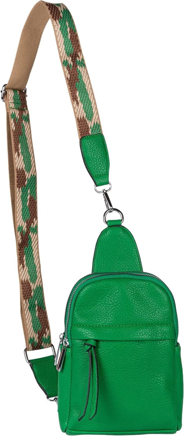 PRODUKTBESCHREIBUNGEN styleBREAKER Einfarbiger One Shoulder Rucksack aus fein strukturiertem Kunstleder mit austauschbarem buntem Stoff Schultergurt Unser moderner einfarbiger One Shoulder Rucksack ist der perfekte Begleiter für deine täglichen Abenteuer. Das einzigartige Design erlaubt es, den Rucksack über eine Schulter oder als Crossbody Bag zu tragen. Der gemusterte Schultergurt aus Stoff sorgt für Komfort und Style. Die beiden Hauptfächer bieten ausreichend Platz für alle deine Sachen und das kleine Fach mit Reissverschluss vorn ist perfekt um wertvolle Gegenstände sicher zu verstauen. Unser One Shoulder Cityrucksack ist die perfekte Wahl, um dir in jeder Situation stilvoll zu helfen! - Modisches Einfarbiges Design mit fein strukturierter Kunstleder Oberfläche - Abnehmbarer und Längenverstellbarer breiter Stoff Schultergurt mit Karabiner zum einfachen austauschen - Breites Gurtband aus hochwertig gewebtem Material mit Kunstleder gesäumte Gurtenden für mehr Stabilität - 2 Hauptfächer mit Reissverschluss - Reissverschluss Fach auf der Vorderseite der Tasche - Die Handtasche kann als Umhängetasche, Schultertasche oder Crossbag getragen werden - Material: Material aussen: 100% Polyurethan Material innen: 80% Nylon / 20% Baumwolle - Masse B/H/T: ca. 15 x 22 x 5 cm - Breite Gurtband: ca. 3,7 cm - Schultergurt verstellbar von ca. 83 bis 135 cm - Ausstattung: 2 Hauptfächer mit Reissverschluss Hauptfächer können über Klettverschluss zu einem grossen Fach zusammengefasst werden Innen 1 Steckfach 1 Reissverschluss Fach vorne Der Inhalt der Produktbilder dient nur zur Veranschaulichung und ist nicht im Lieferumfang enthalten.