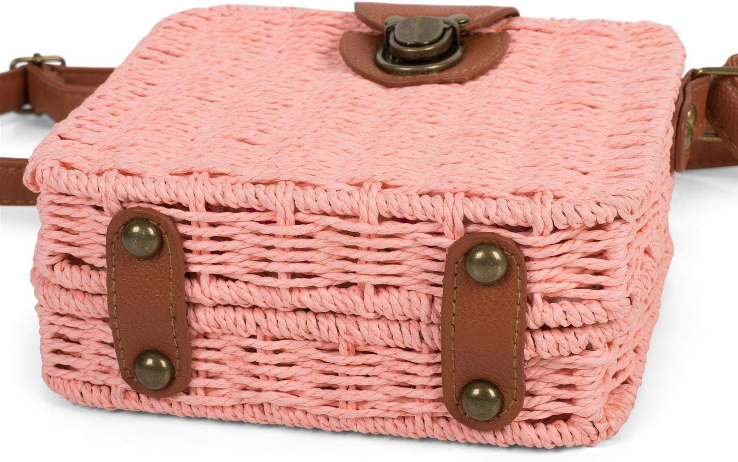 PRODUKTBESCHREIBUNGEN styleBREAKER's sommerliche quadratische Crossbody Bag Umhängetasche im coolen Bohemian Style in Rattan Optik. - verstellbarer Schultergurt für angenehmen Tragekomfort - die Tasche kann als Schultertasche, Umhängetasche bzw. Crossbody Bag getragen werden, je nach Einstellung des Gurts - Tasche mit schmalem Umschlag und Details aus Kunstleder - Umschlag mit Mappenschloss Druckverschluss - hochwertig verarbeitetes Material innen und aussen - Material: Material aussen: 90% Papier / 10% PVC Material innen: 100% Polyester - Masse B/H/T: ca. 18 x 16 x 7 cm - Schultergurt verstellbar von 66 bis 127 cm - Ausstattung: Hauptfach mit Mappenschloss Druckverschluss Inhalt der Produktbilder dient nur zur Veranschaulichung und ist nicht im Lieferumfang enthalten. styleBREAKER Mode und Trendartikel Weitere interessante Angebote finden Sie in unserem Shop, vorbeischauen lohnt sich!