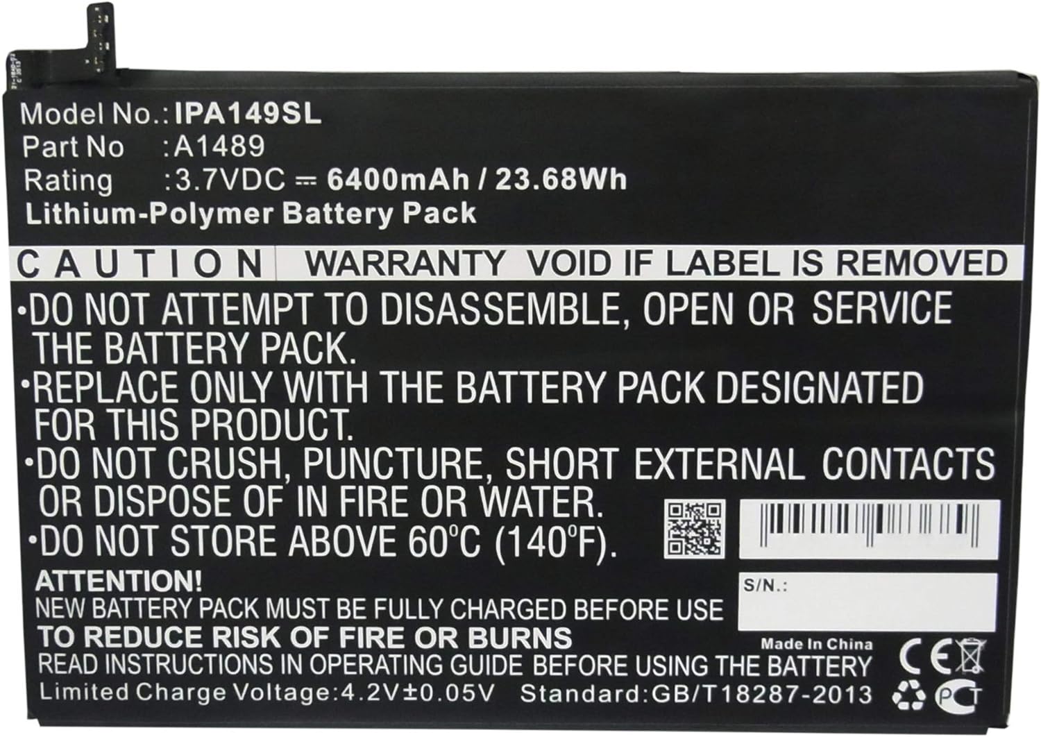 - SERIEN, FILME UND SPIELE OHNE ZWISCHENLADUNG - Mit der hohen Kapazität von 6400mAh liefert der Zusatzakku lange Laufzeiten und in jeder Situation die nötige Energie. Ersetzt Ihren A1512 Originalakku