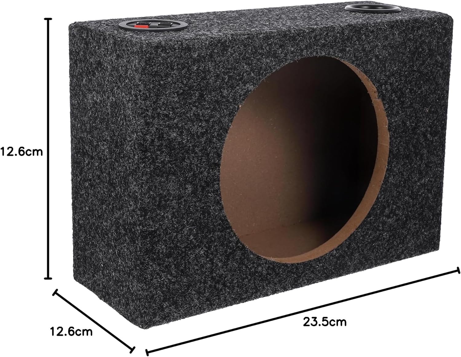 - Mit teppich ausgelegtes subwoofer-gehäuse – hergestellt aus plüsch-, holz-, abs- und zinklegierungsmaterialien für haltbarkeit und zuverlässigkeit.