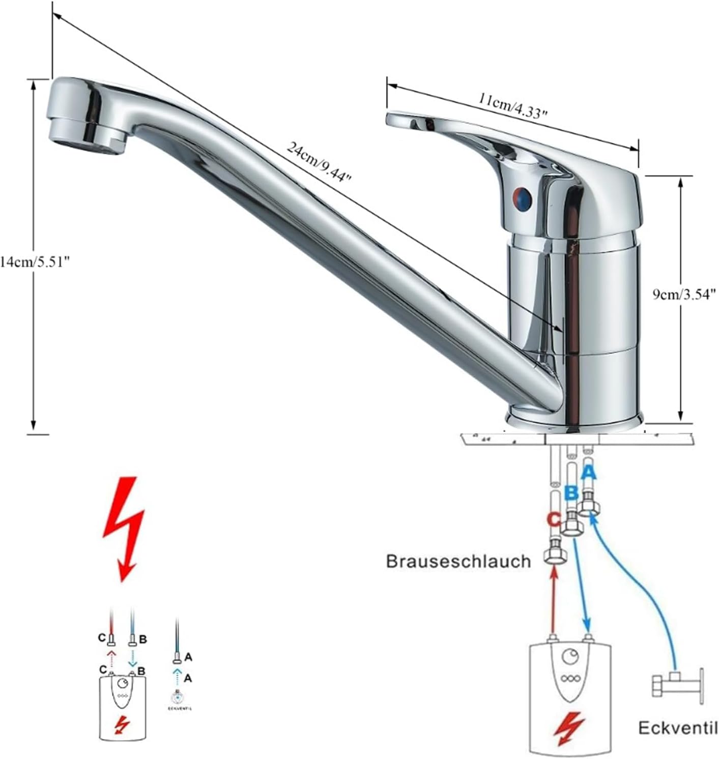 - Einhebel-Design macht den mischbatterie küche einfacher, den Wasserfluss und die Temperatur zu regulieren. Kann an alle gängigen Kalt- und Warmwasser-Drucksysteme angeschlossen werden.