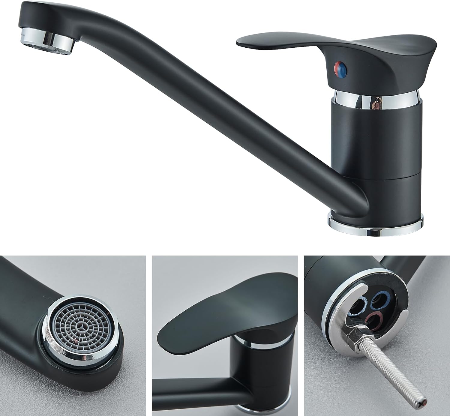 • Einhebel-Design macht die Küchenarmatur einfacher, den Wasserfluss und die Temperatur zu regulieren. Kann an alle gängigen Kalt- und Warmwasserdrucksysteme angeschlossen werden.
