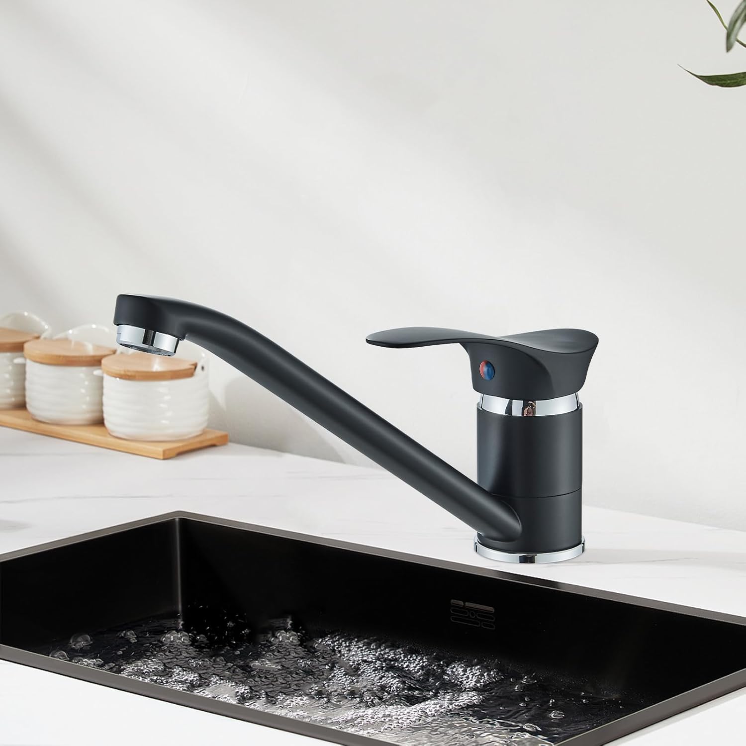 Suguword Niederdruck Küchenarmatur Schwarz Spültischarmatur Küche Armatur Wasserhahn 360° Schwenkbar