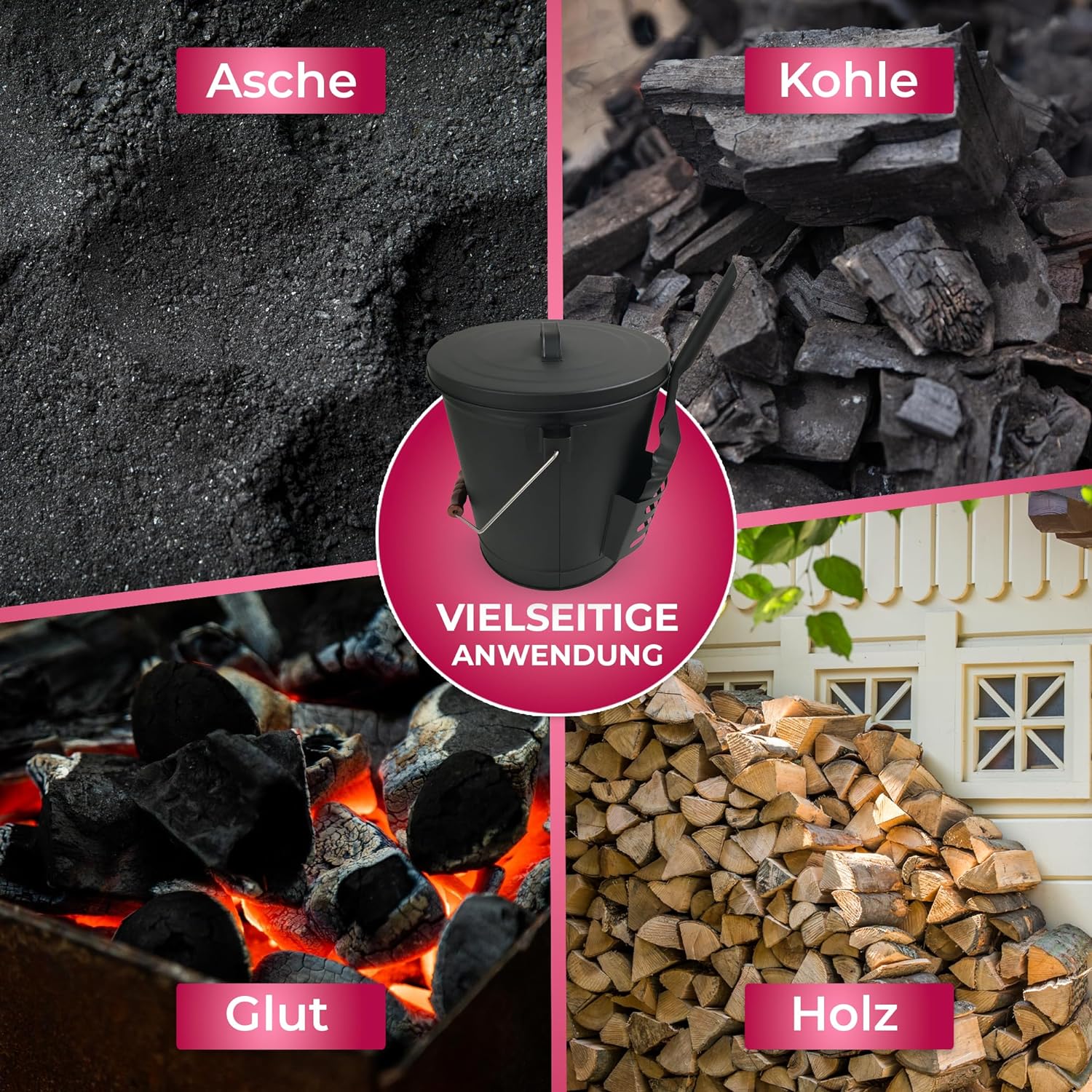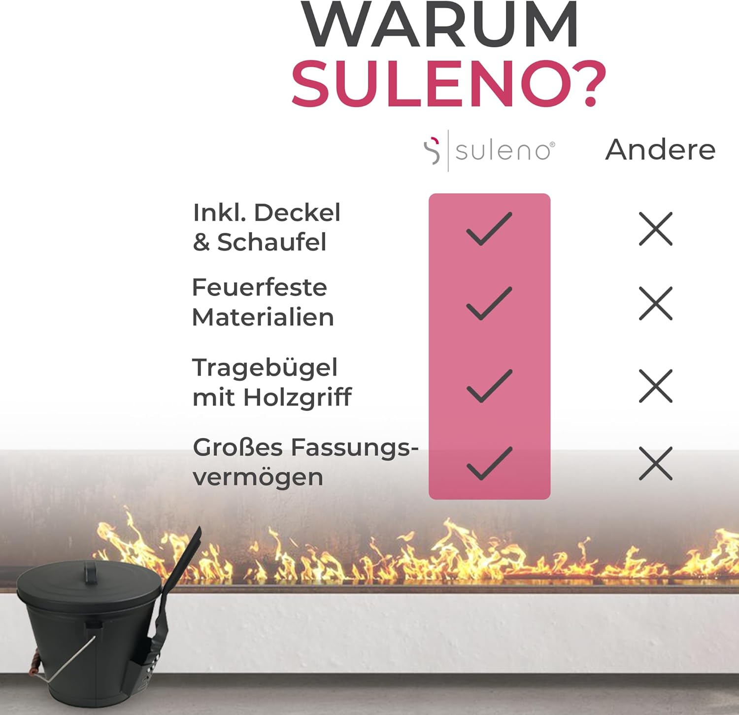 - Der SULENO Ascheeimer BOSTON mit Deckel und Schaufel besteht aus robustem Stahl und ist in matt-schwarz pulverbeschichtet. Er eignet sich zum Transport von Kohle und Asche am Kamin, Werkstattofen oder auch beim Grillen.