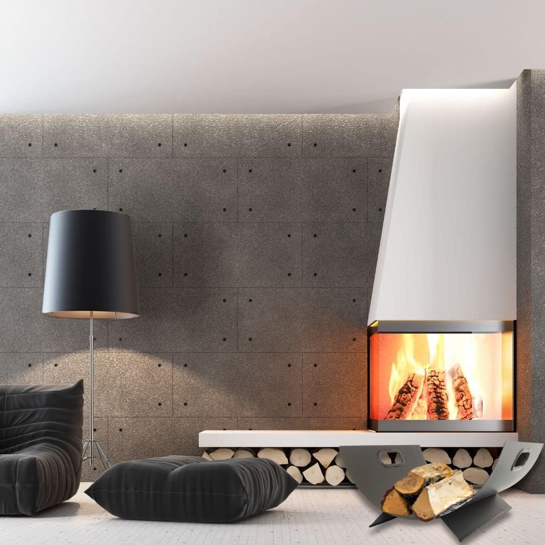 - Modernes und ansprechendes Erscheinungsbild: Das Design des DOVER Holzkorbs besticht durch seine Eleganz und Modernität. Die mattschwarze Pulverbeschichtung verleiht ihm eine zeitgemässe Note, die hervorragend zu modernen Kaminen passt. Der Korb fügt
