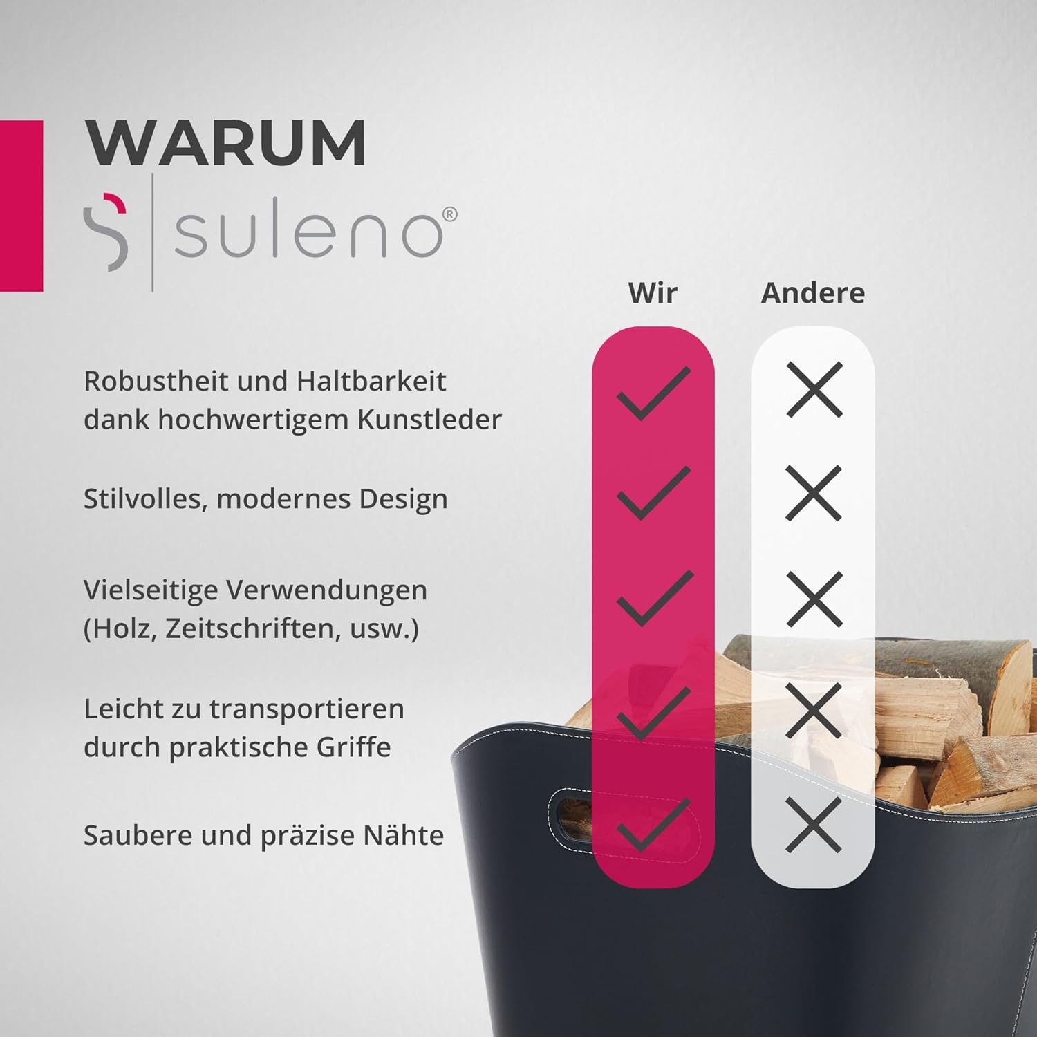 - đ„UNIVERSELL EINSETZBAR: Als Brennholzkorb erleichtert der SULENO WEXFORD das Tragen von Holzscheiden. Genauso gut kann dieser aber auch als ZeitungsstĂ€nder, Spielzeugkorb uvm. genutzt werden.