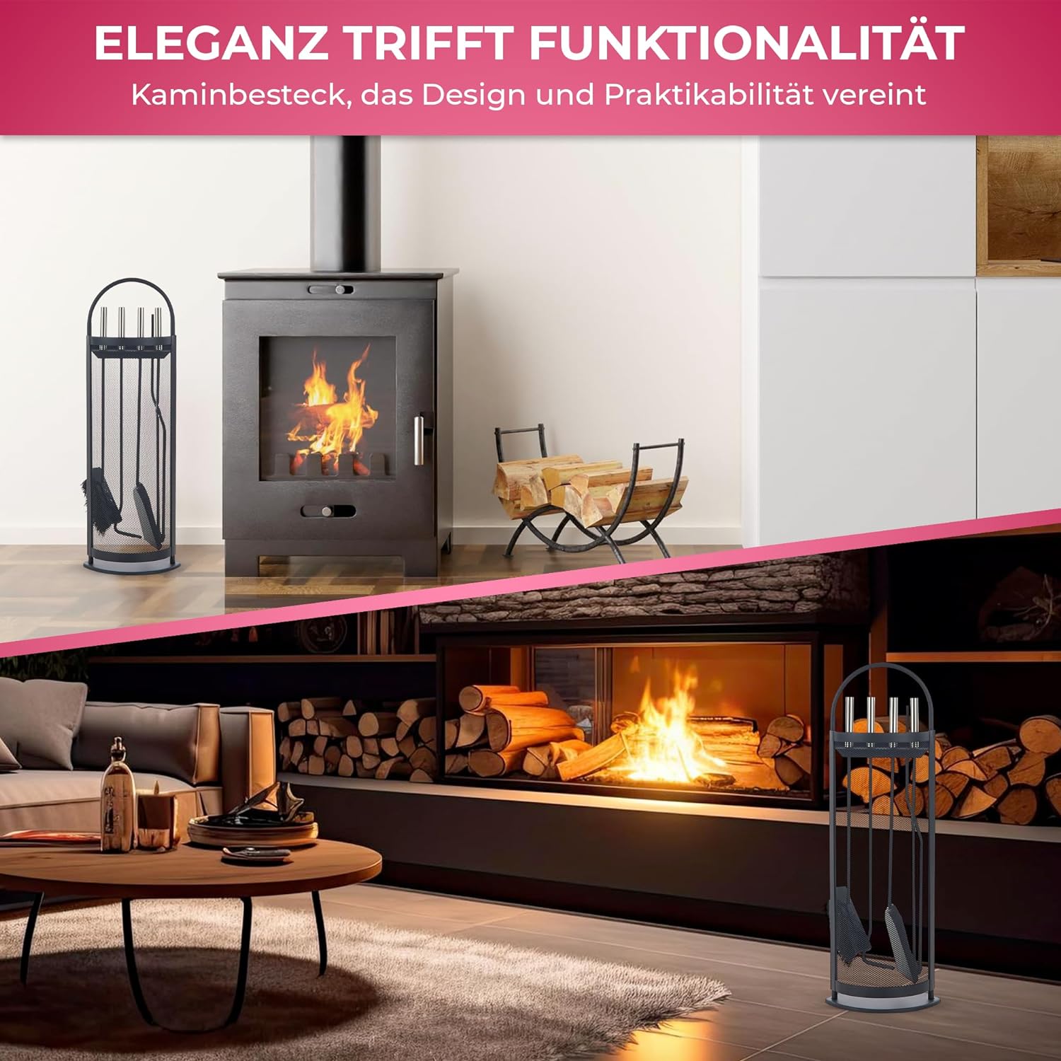 - 🔥FEUERFEST UND BESONDERS LANGLEBIG | Kaminbesteck kann am Ständer leicht eingehangen werden!
