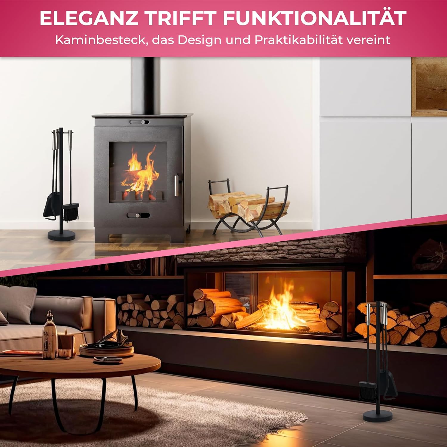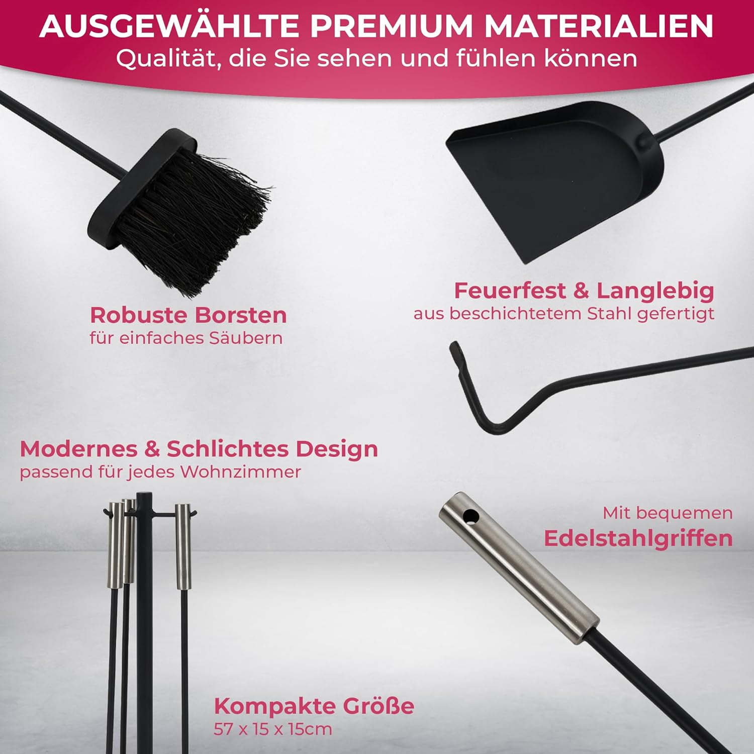 - 🔥FEUERFEST UND BESONDERS LANGLEBIG | Kaminbesteck kann am Ständer leicht eingehangen werden!