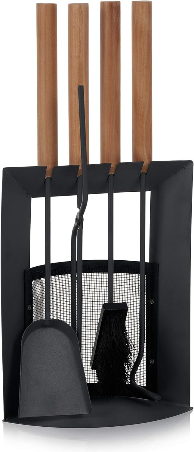 - 🔥KNISTERNDES KAMINFEUER - JETZT WIRD ES HYGGELIG! Mit dem Kaminbesteck LIVERPOOL reinigt man den Kamin perfekt. Das Ofenbesteck ist ein 5-teiliges Set bestehend aus Kaminschaufel, Kaminbürste, Kaminhacken, Kaminzange und natürlich einem Ständer. Die Kamingarnitur ist für jede Räumlichkeit geeignet. Egal ob modern, elegant, rustikal oder dezent. Die Mischung aus Holz und schwarzen Stahl ist ein optisches Highlight.