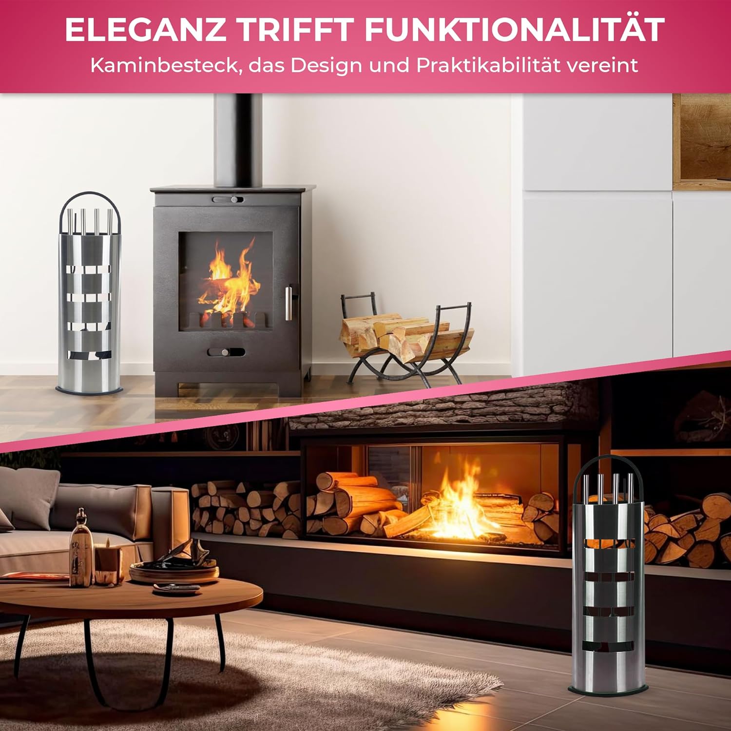 - 🔥FEUERFEST UND BESONDERS LANGLEBIG | Kaminbesteck kann am Ständer leicht eingehangen werden!