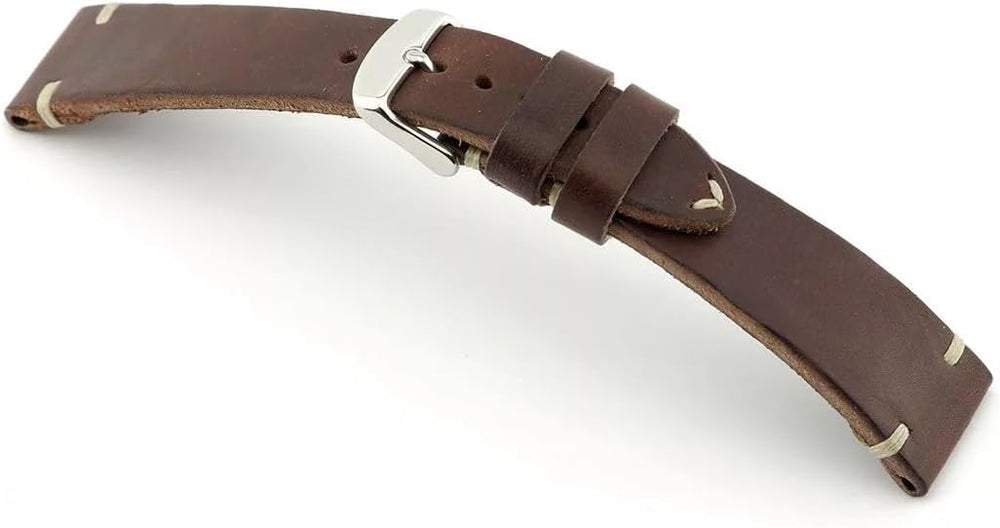 PRODUKTBESCHREIBUNGEN RIOS 22 mm handgefertigtes Lederband, weiss, Naht, 22 mm, 20 mm, Retro-Look, Armband Rios 1931, Vintage-Stil, robust, deutscher Hersteller für Markenuhren. Bandanstossbreite, Schliessanstoss: 22 mm, 20 mm. Weiches und robustes Leder, antiallergisch. Handgefertigt in Deutschland. Länge der Einzelteile ohne Schliesse 115 mm, 83 mm. Bandstärke: ca. 4 mm.