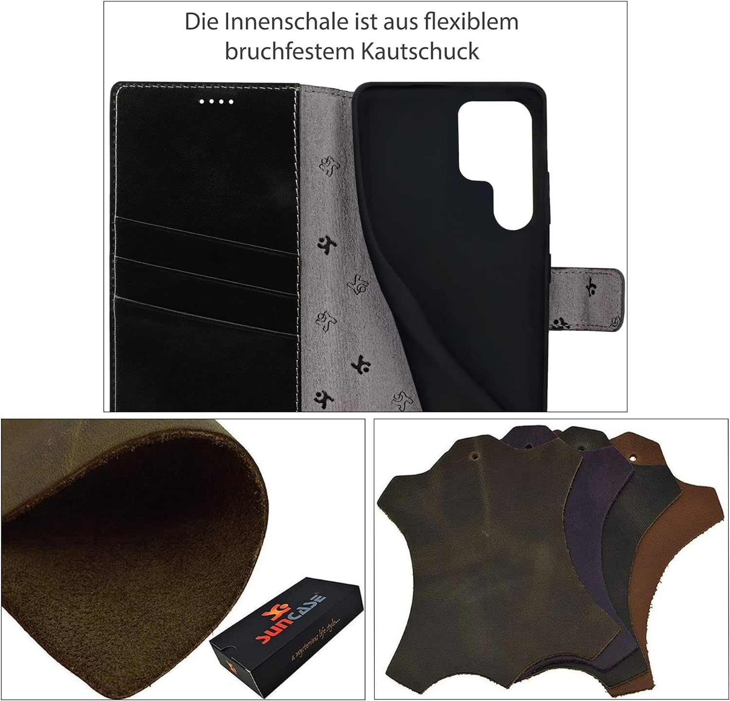 Suncase Book-Style Hülle kompatibel mit Samsung Galaxy S22 Ultra 5G Leder Tasche (Slim-Fit) Lederhül