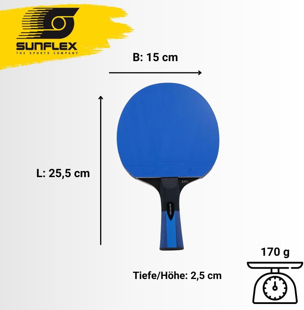 - Das Gewicht des Schlägers beträgt ca. 180 g. Lieferumfang: 1x Sunflex COLOR COMP B45 Tischtennisschläger