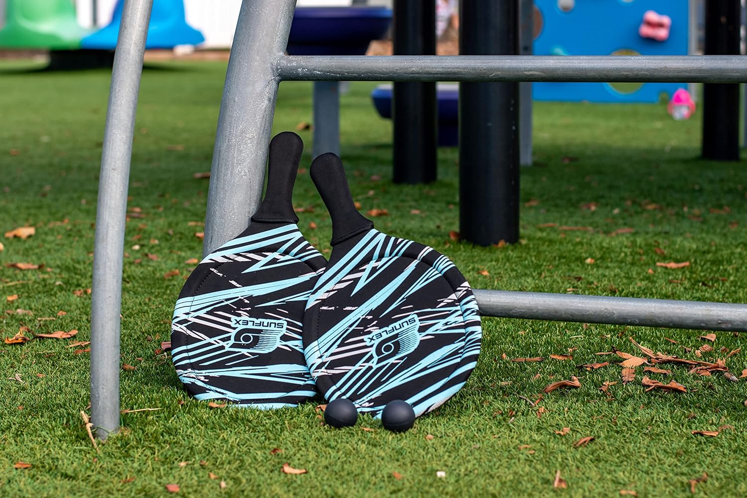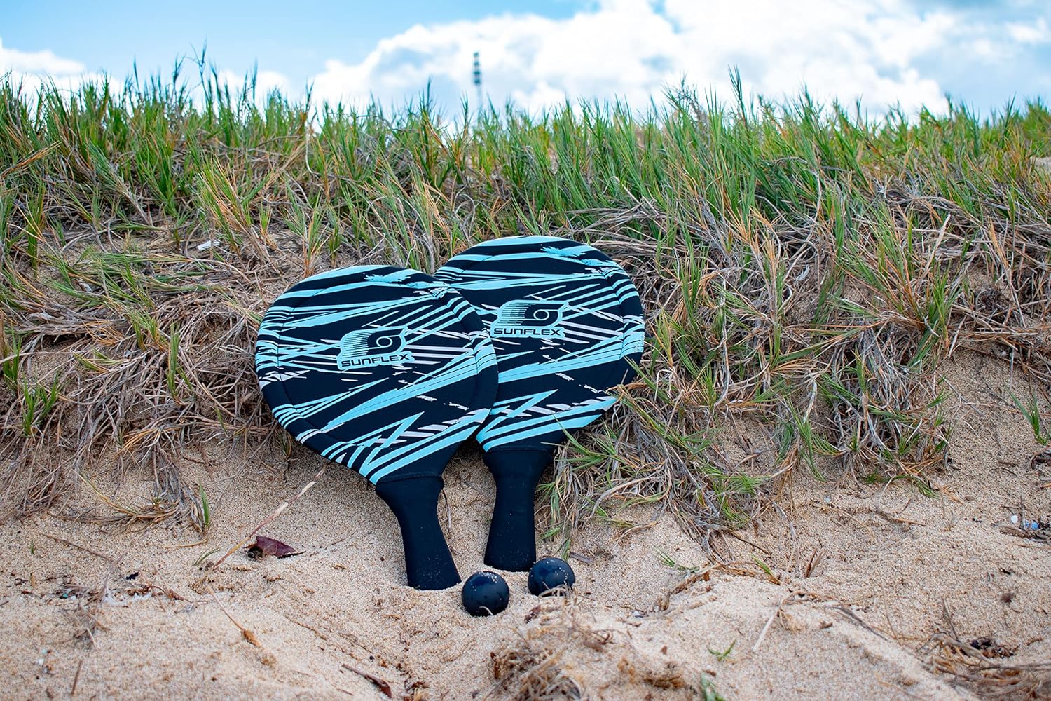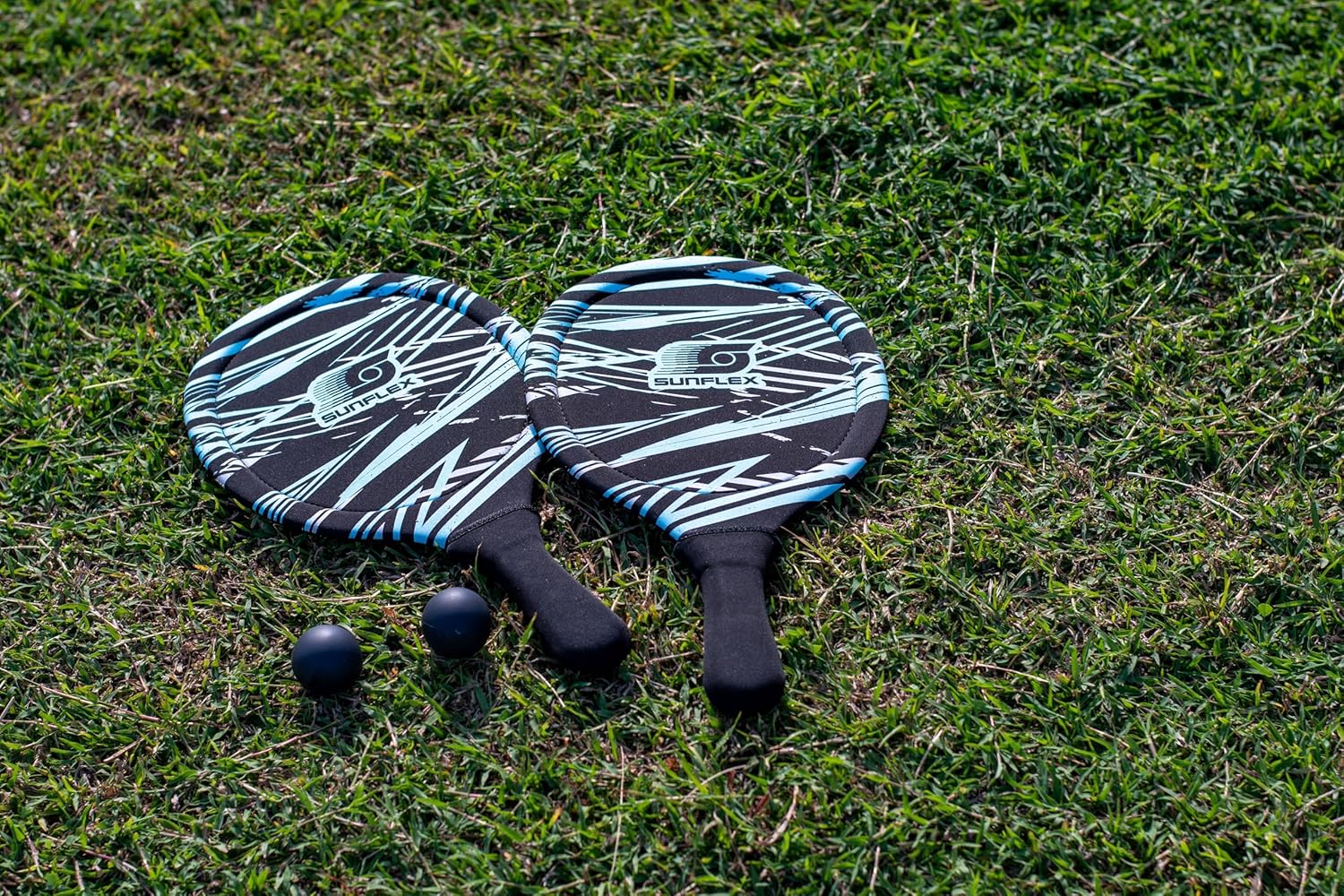 - Beachball Set mit zwei Schlägern und zwei Bällen. Hochwertige Verarbeitung mit Neopren-Material und super Bounce-Effekt. Gummi-Ball für etwas mehr Windstabilität.