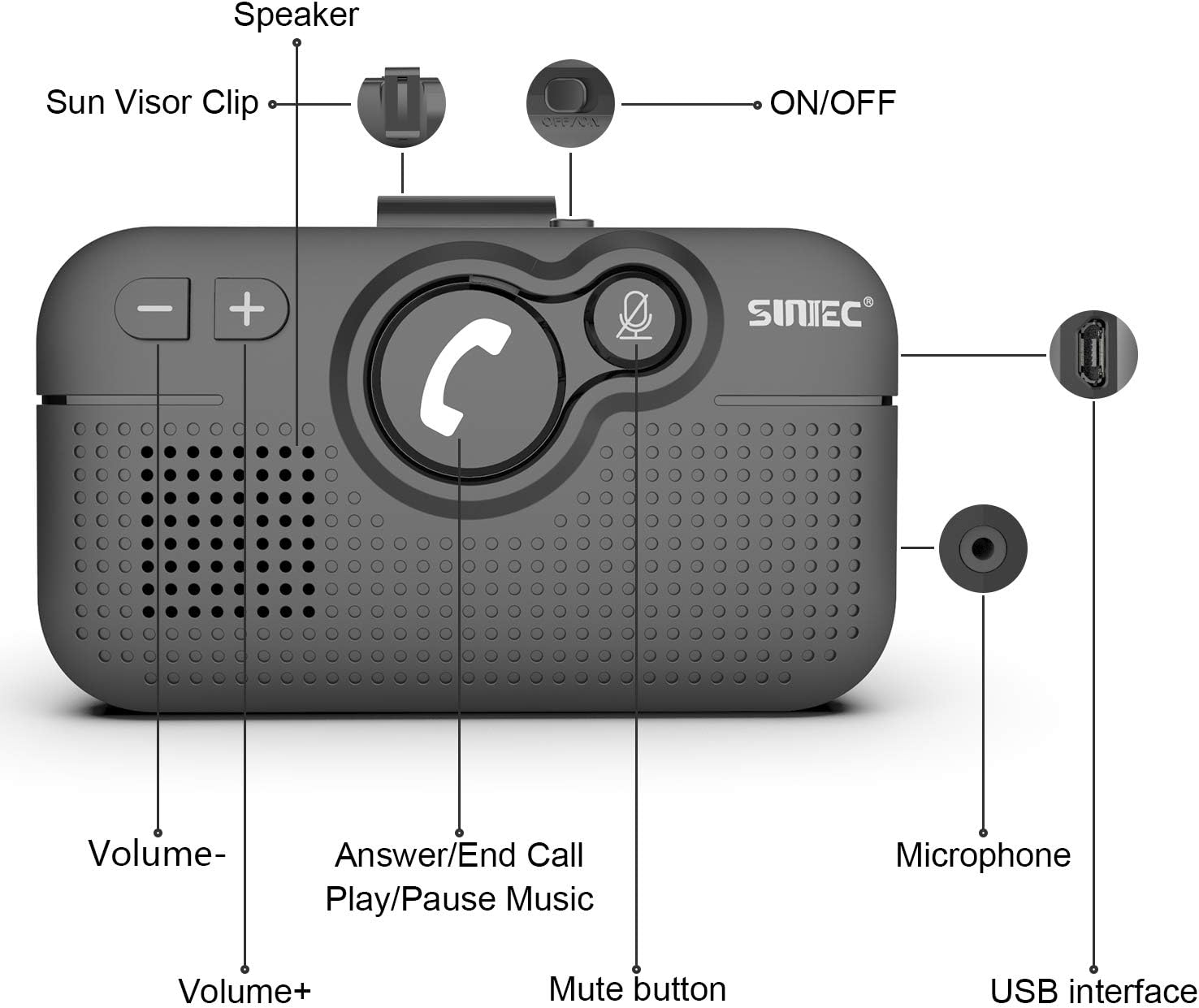 SUNITEC Freisprecheinrichtung für Auto,Bluetooth 5.0,Unterstützt GPS,Siri,Musik,Auto Power On,Google