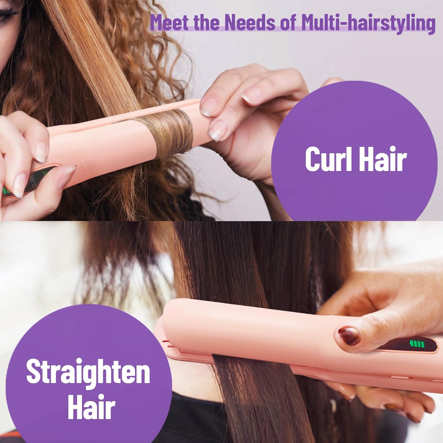 - ❤【3 Temperaturstufen & schnelles Aufheizen in Sekunden】Der cordless hair straightener verfügt über 3 einstellbare Temperaturen (165 °C, 185 °C, 205 °C), 165 °C ist für dünnes Haar. 185 °C ist für normales Haar. 205 °C ist für