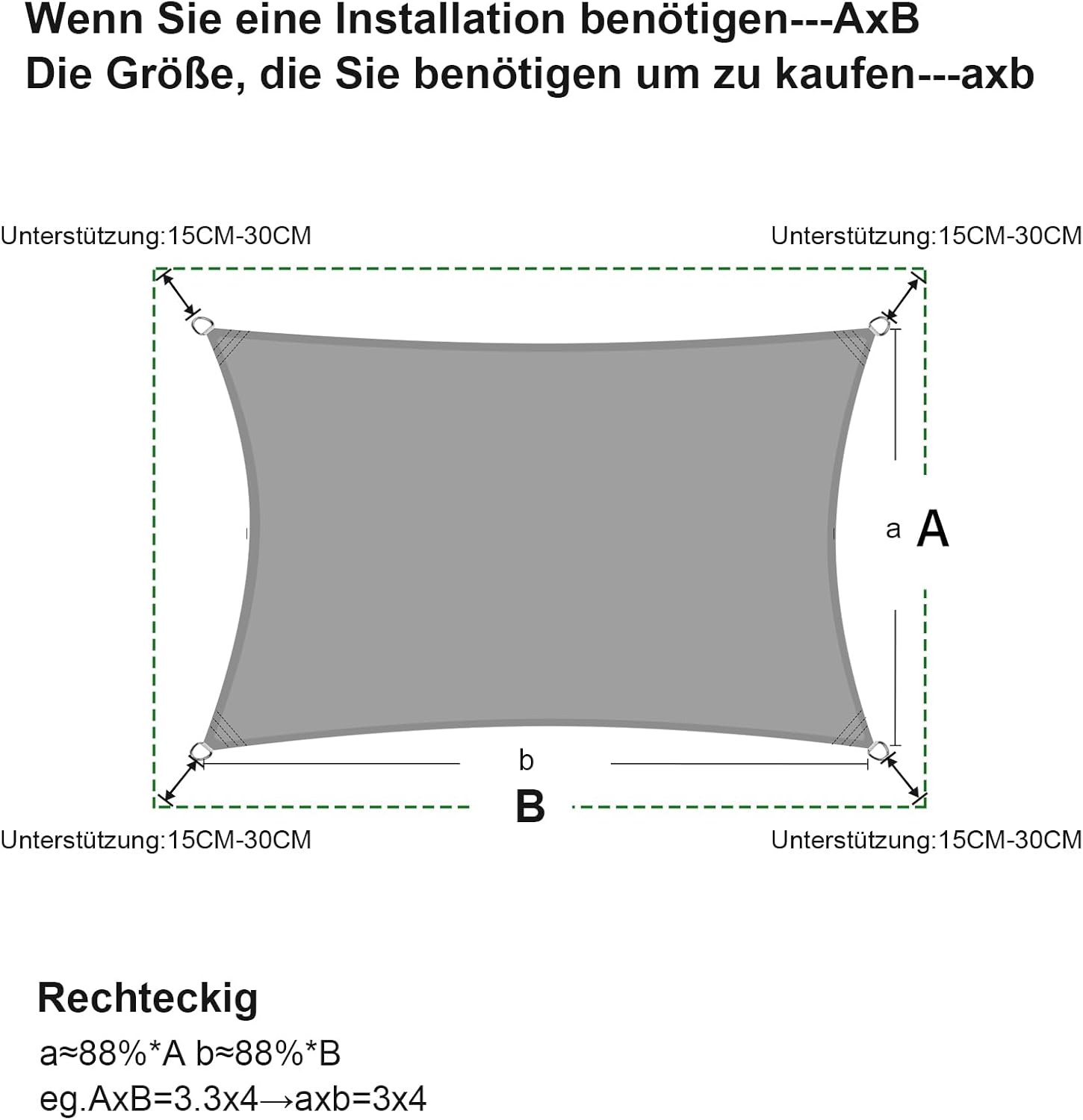 - ✔【Grössenbeschreibung】:Die Produktgrösse bezieht sich auf den Abstand vom D-Ring zum anderen Ende des D-Rings,Die Grösse des segeltuch sonnensegel entspricht der Grösse der Fläche, wenn das Segel vollständig entfaltet ist (die