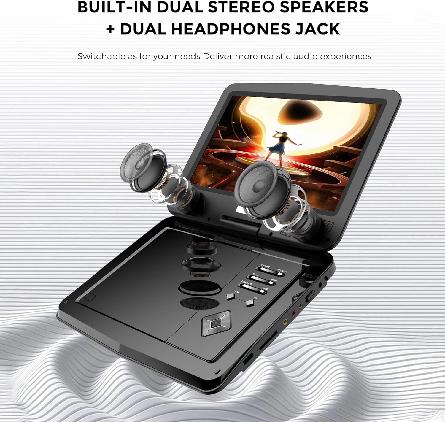 SUNPIN 12,5 Zoll Tragbarer DVD Player mit 10,5 Zoll HD Schwenkbaren Bildschirm, 6h Akkulaufzeit, Reg