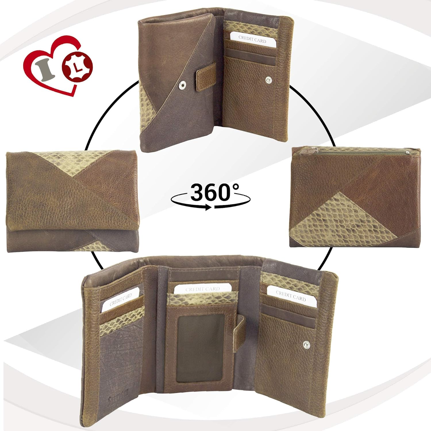 Sunsa Geldbörse. Damen Geldbeutel. Leder Portemonnaie mit RFID Schutz. Mittlere grosse Brieftasche m